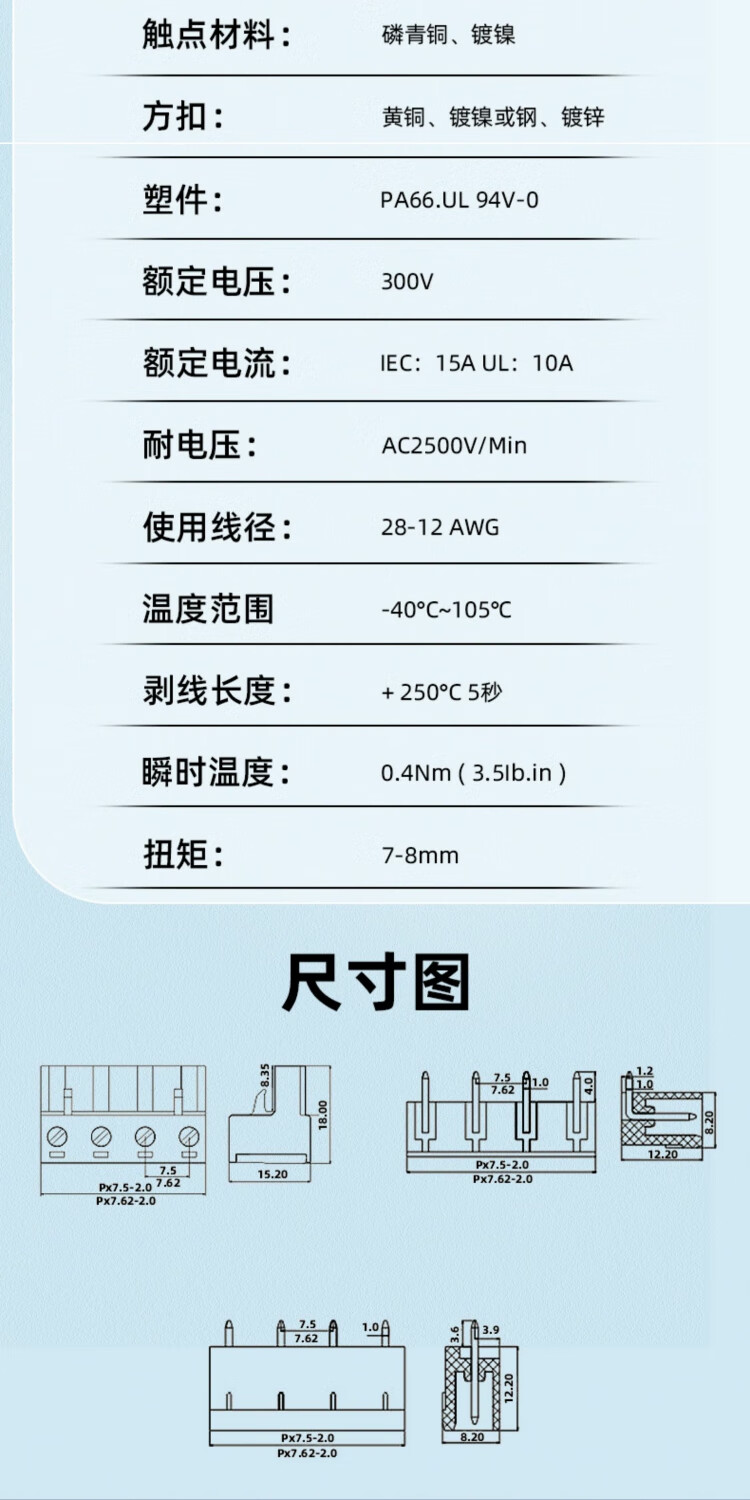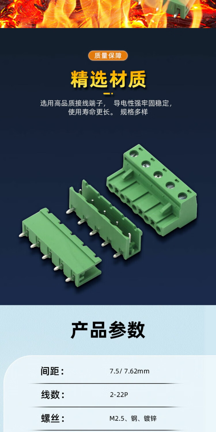 Dafuri KF2EDG 7.62MM terminal block PCB terminal 2P 3P 4P 5P6P7P8P9P12P plug-in 2P socket 7.62MM plug-in (2 pieces)