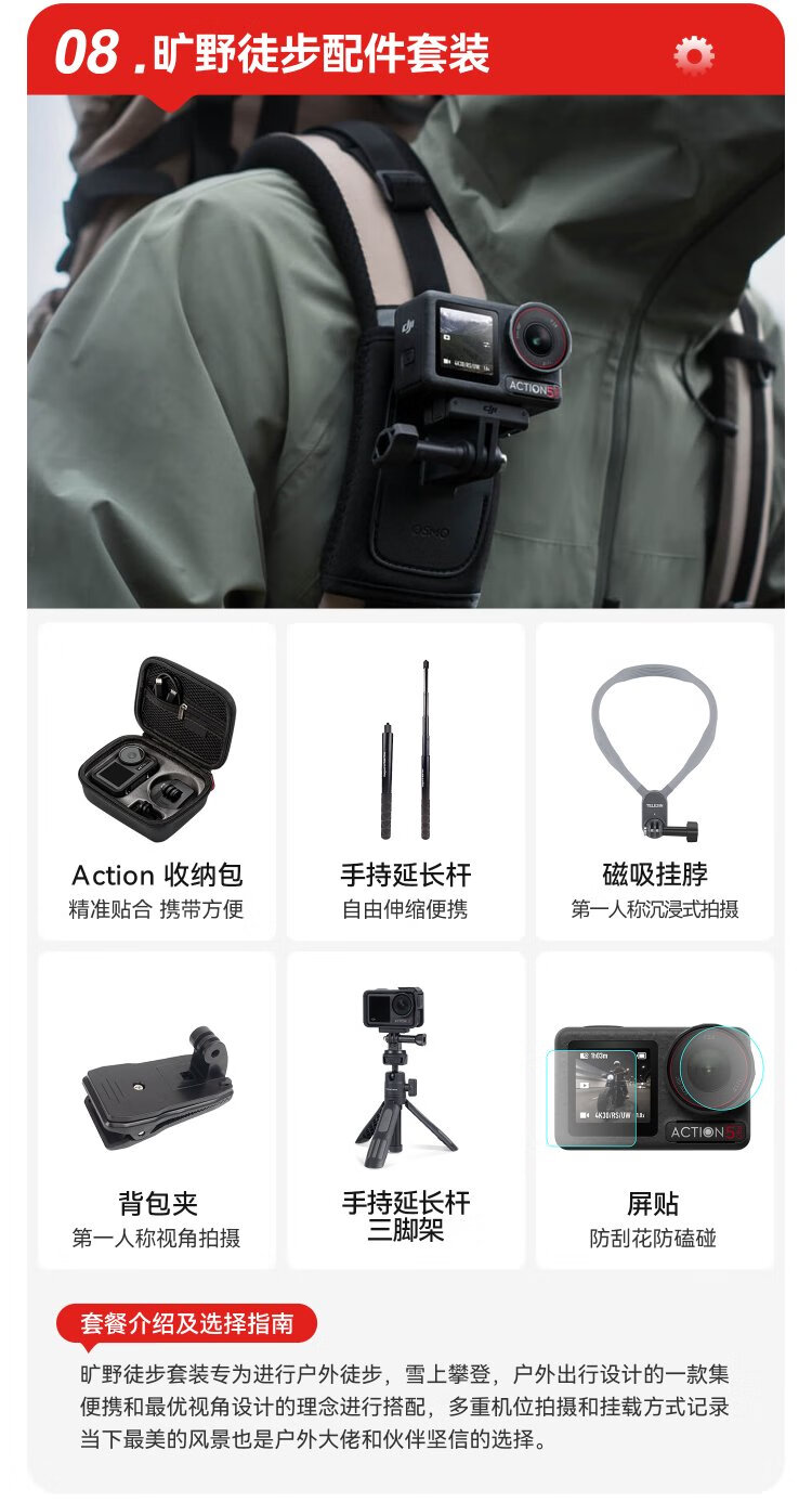 DJI Shadow Craftsman is suitable for DJI Action5Pro/Action4 sports camera magnetic hanging neck handheld pole accessories cycling diving skiing vlog hiking fishing street photography suit Action5Pro/4 magnetic hanging neck