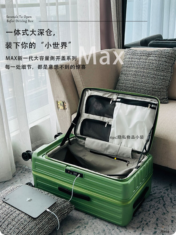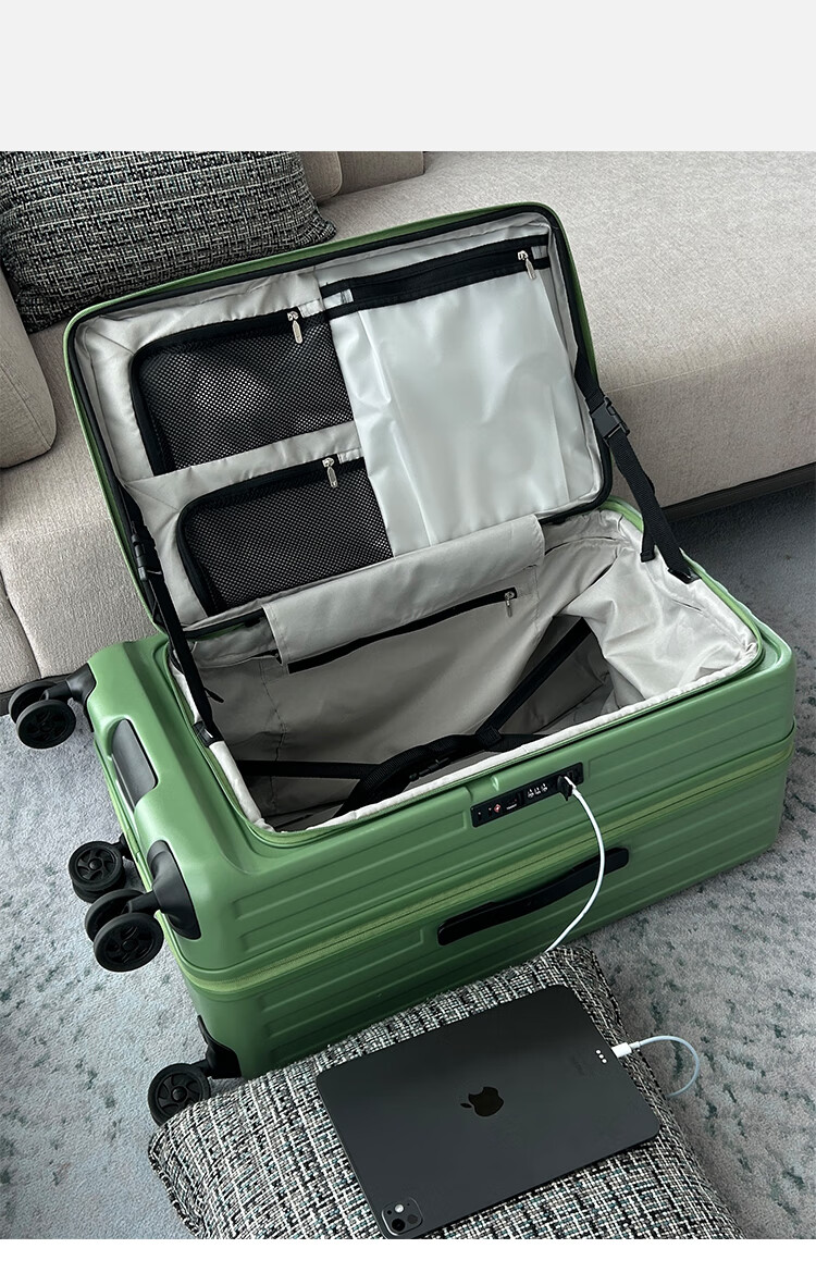 MDNG Japan imported quality brand side opening lid large capacity multifunctional expandable suitcase for men and women 24 inches business leather avocado green capacity upgrade large and lightweight 28 inches fully expanded large deep storage type conventional 32 inches