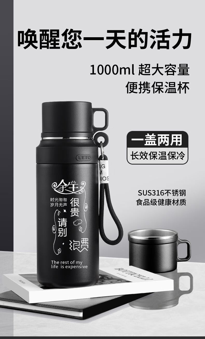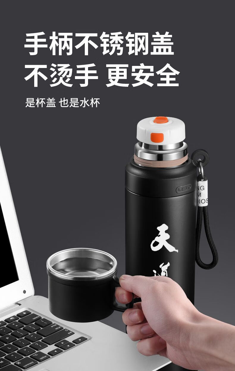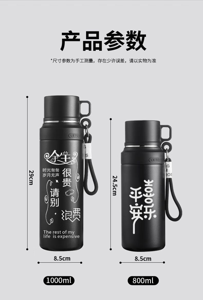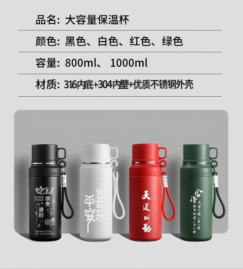 Fat Donglai purchases 316 stainless steel tons of barrels, big belly thermos cups and kettles, super large capacity, new men's portable cold storage dual-purpose 316 stew tea cup black 800 ml (new upgraded steel cover) laser engraving on the cup body (the rest of your life is very expensive) recommended by the store manager