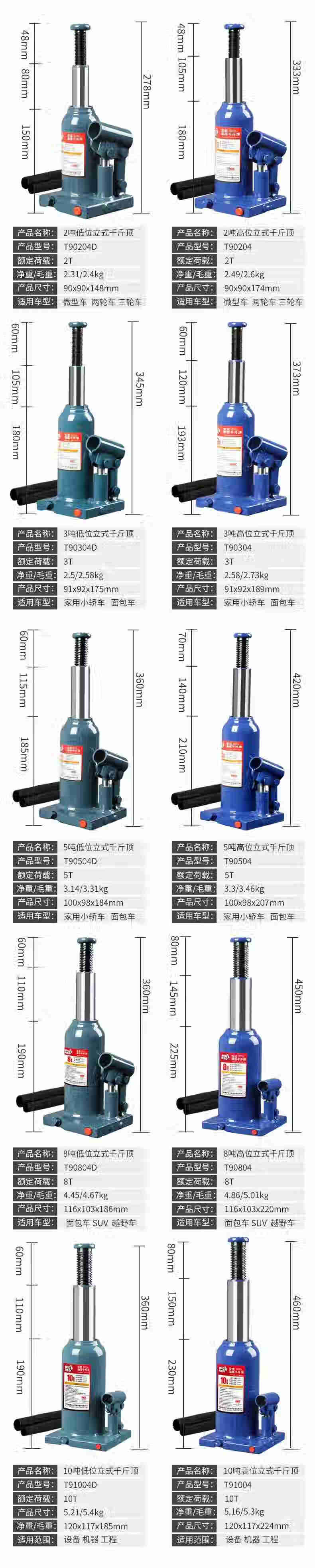 Tongrun Zhonglian Automobile vertical hydraulic jack car lifting and tire changing tool torin blue vertical top T90504B-5T