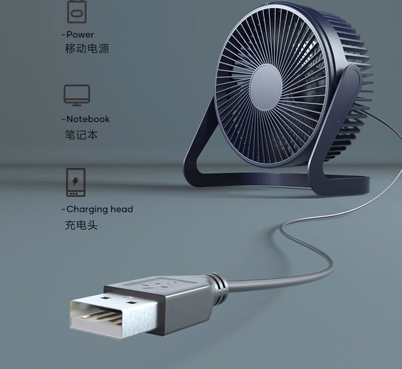 Tuxu mini small fan. Desktop desktop mini USB plug-in dormitory small refrigeration table. Fan car household appliances, one-speed adjustment + USB direct plug, dark blue 5 inches