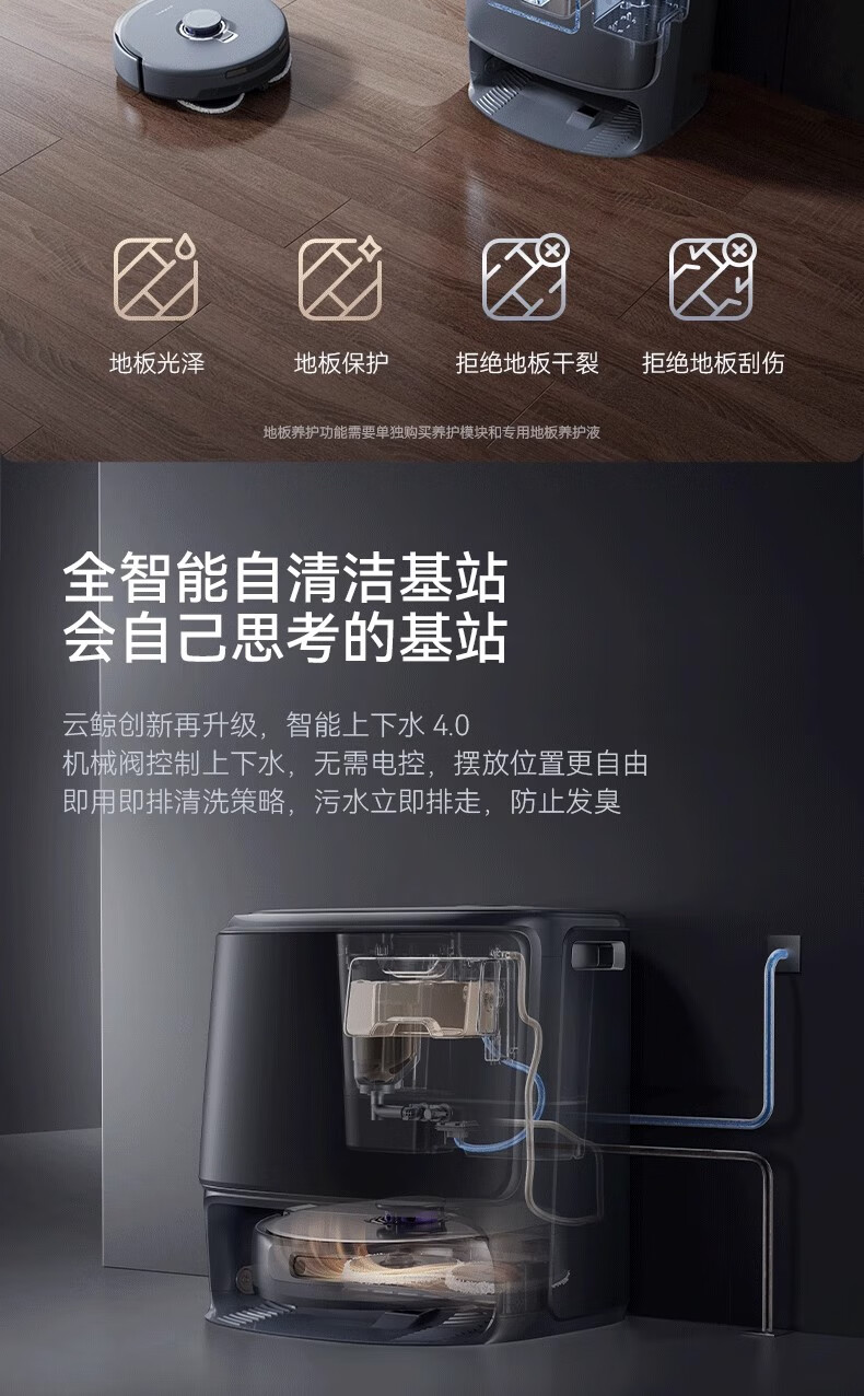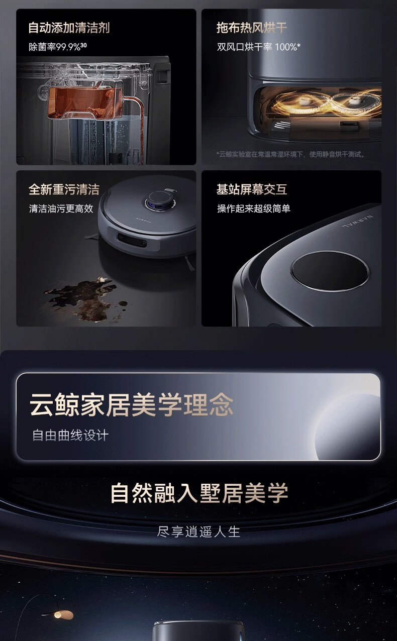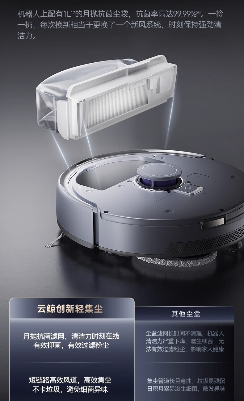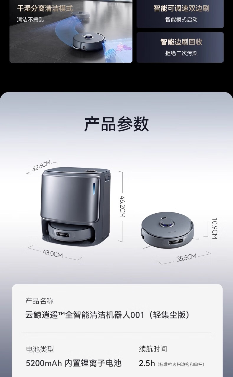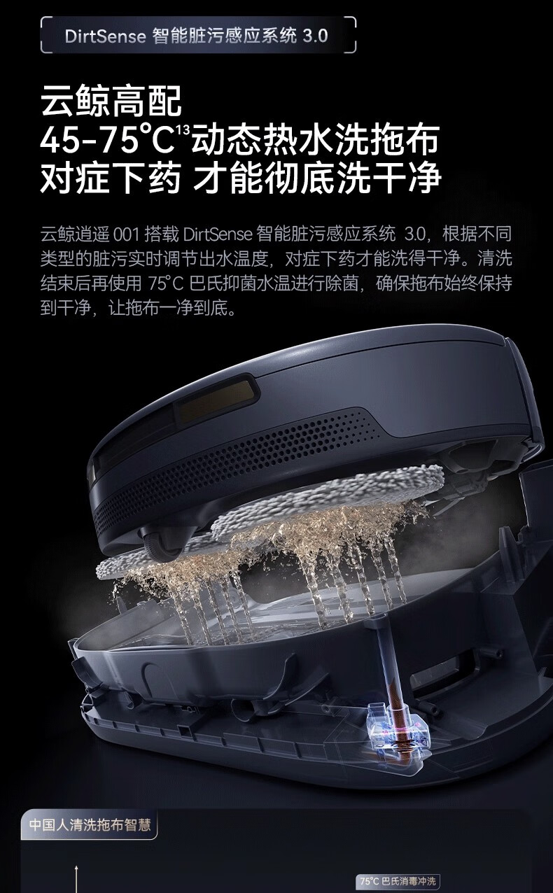 Cloud Whale Officially reprinted genuine Cloud Whale Xiaoyao 001 light dust collection sweeping robot with sweeping and mopping all in one intelligent automatic cleaning binocular dual core dynamic hot water washing mop Officially reprinted genuine Cloud Whale Xiaoyao 001 light dust collection water tank version
