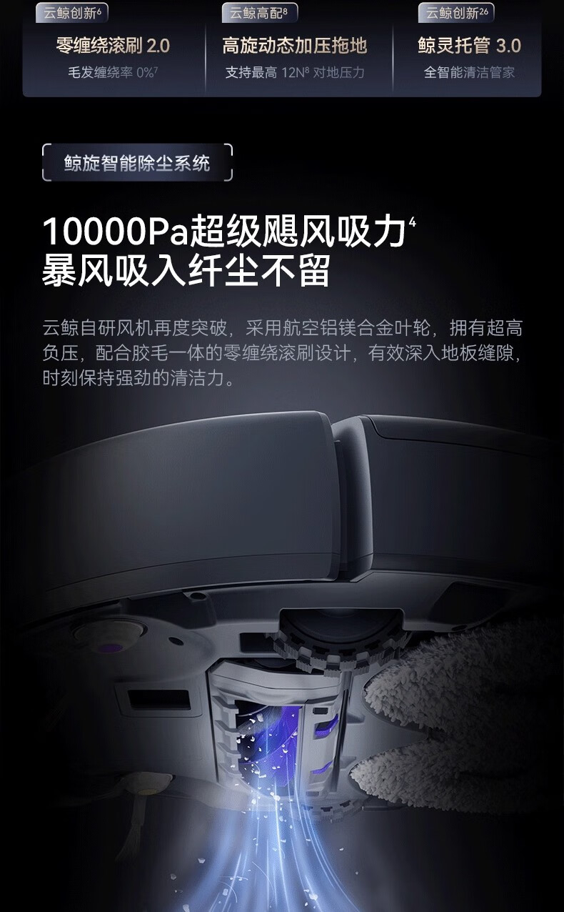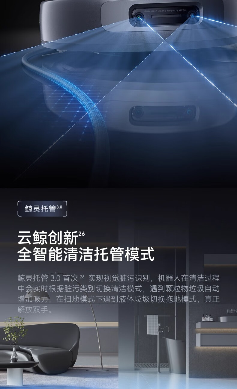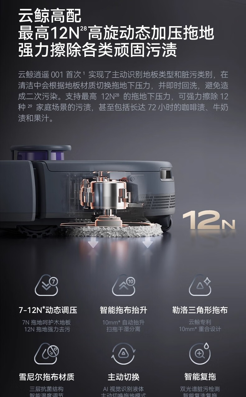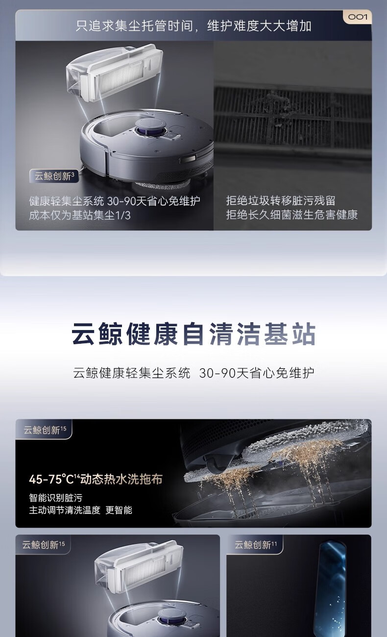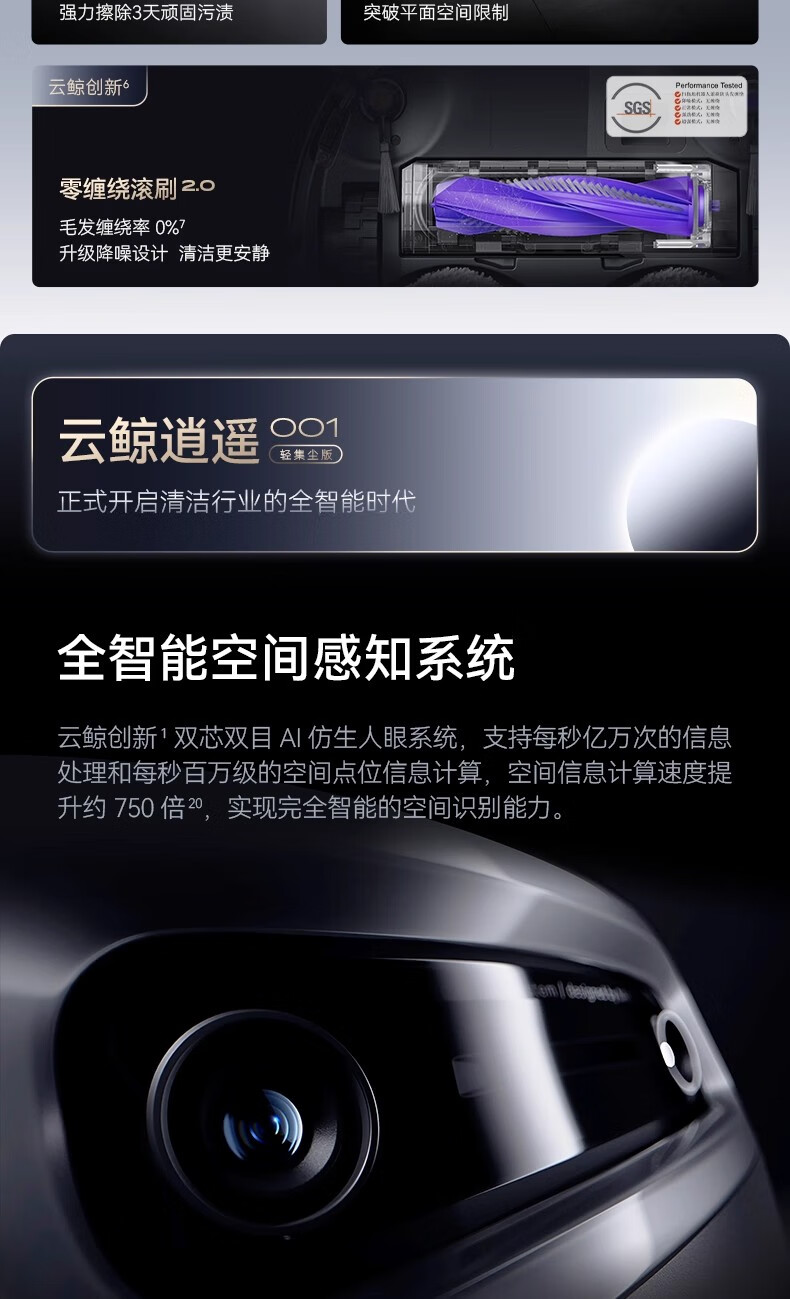 Cloud Whale Officially reprinted genuine Cloud Whale Xiaoyao 001 light dust collection sweeping robot with sweeping and mopping all in one intelligent automatic cleaning binocular dual core dynamic hot water washing mop Officially reprinted genuine Cloud Whale Xiaoyao 001 light dust collection water tank version
