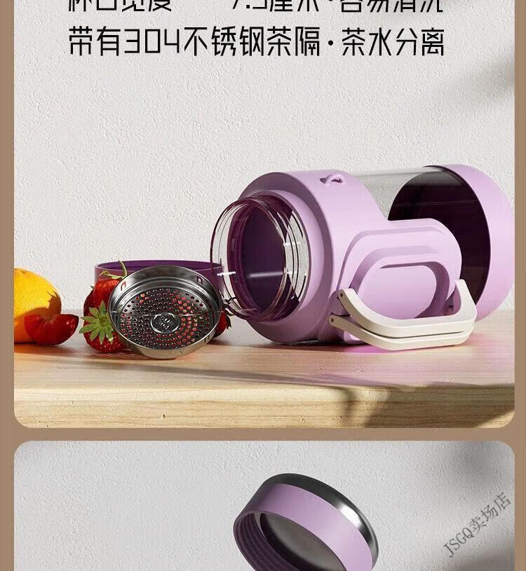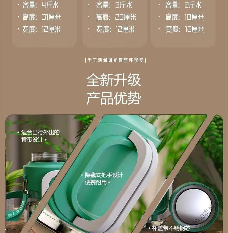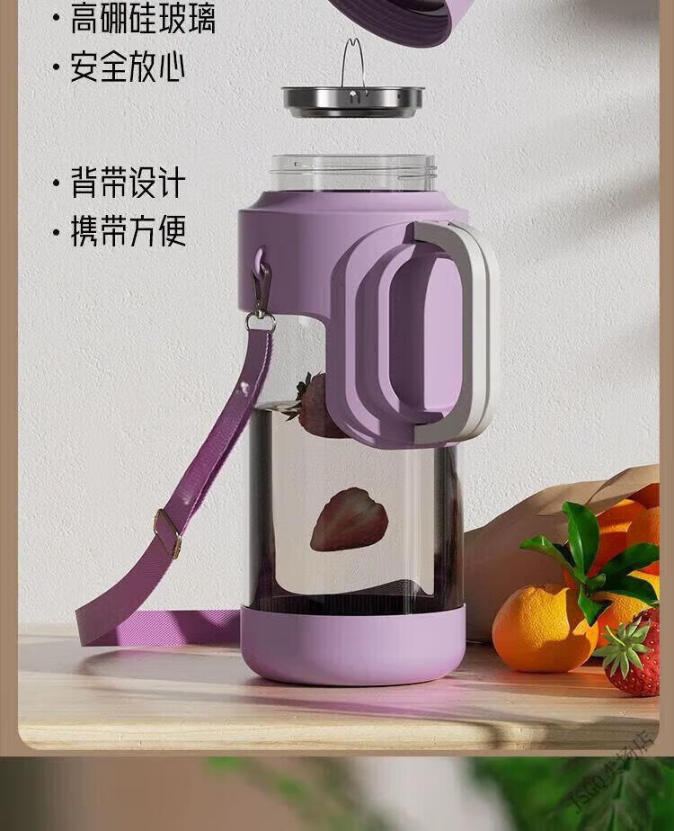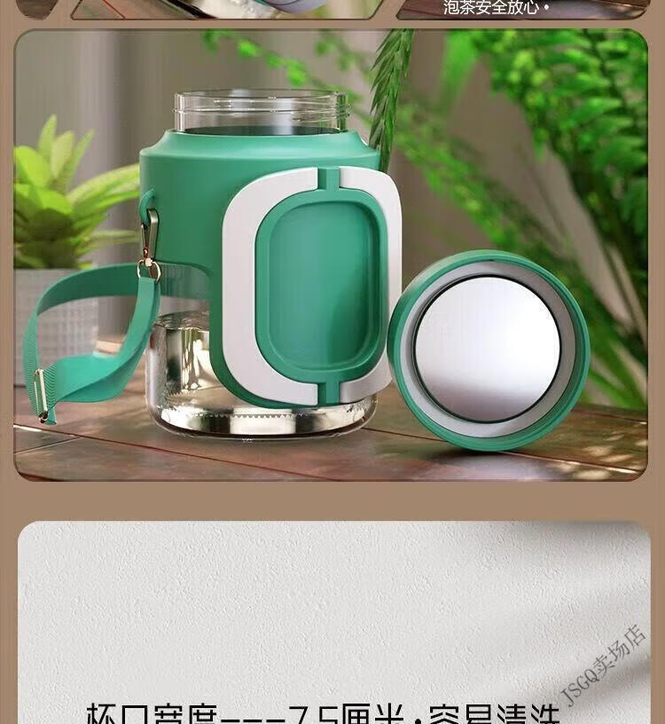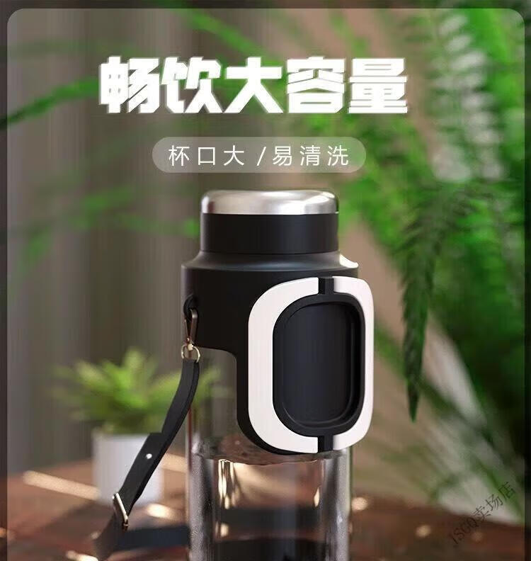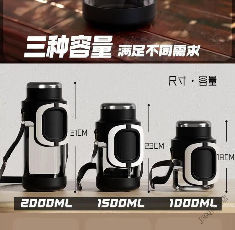 Large tea cup, large capacity, 2000 to 3000 liters, ton barrel, anti-fall glass water cup, men's summer super heat-insulated portable size, white + strap + cup brush 1000ml (without base)