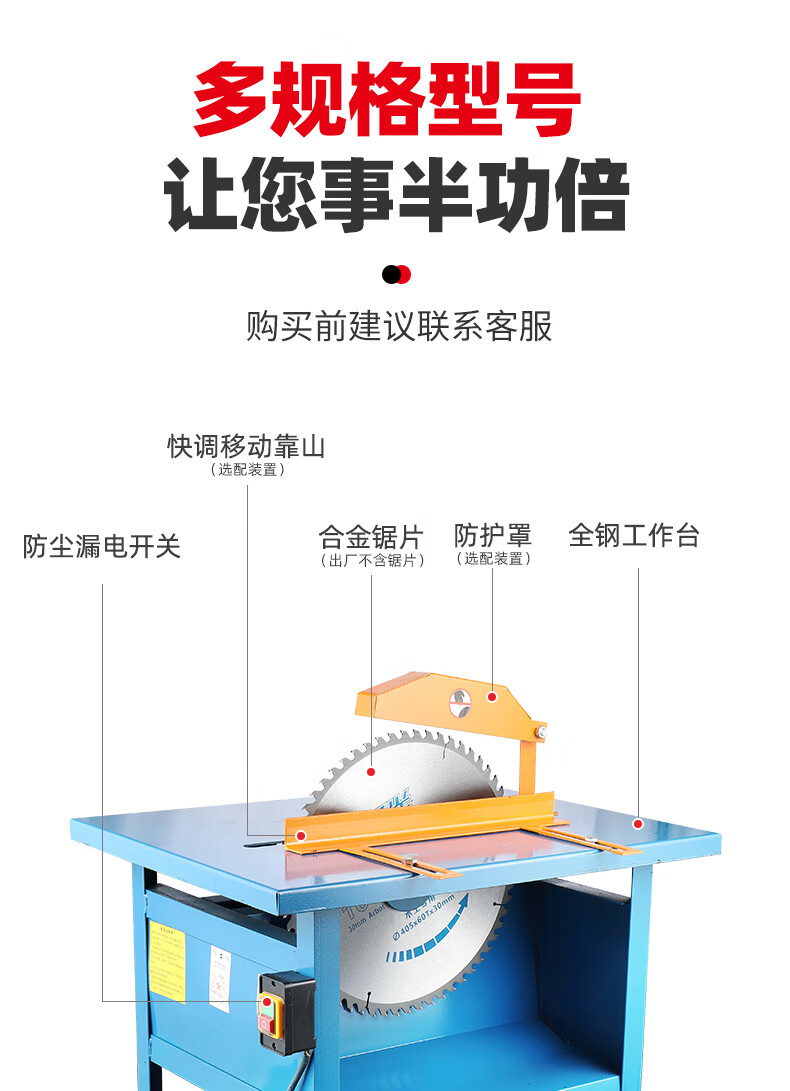 Braunqing desktop woodworking table saw multi-function cutting machine circular saw electric circular saw heavy-duty table saw construction site cutting machine 400 type 3kw single-phase electricity 220V with 16-inch saw blade