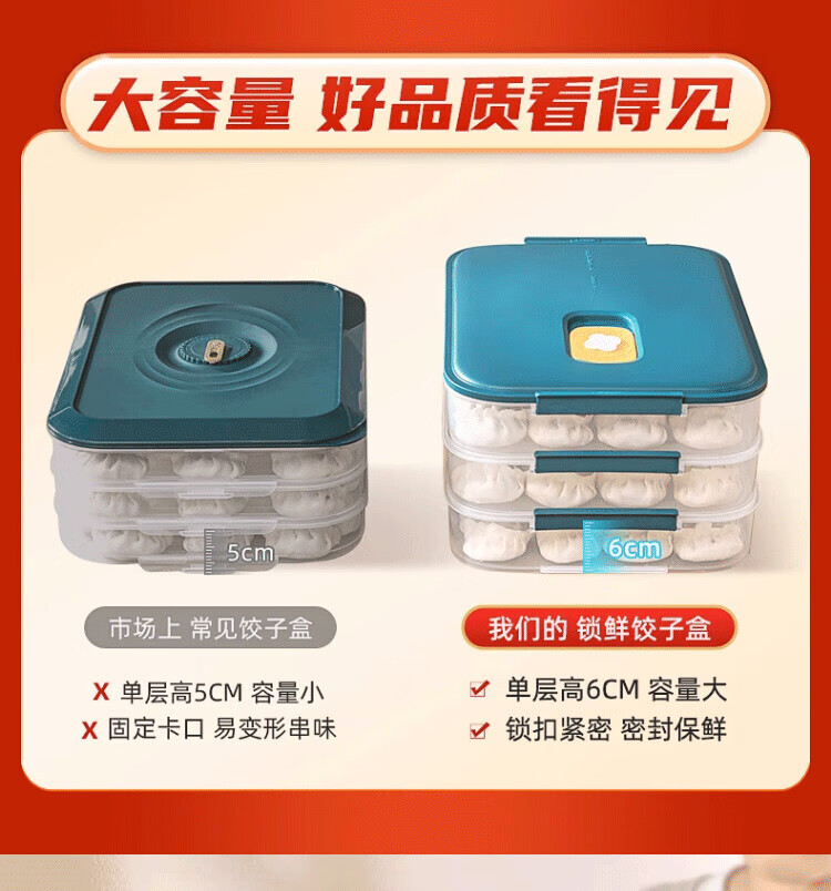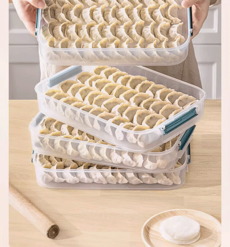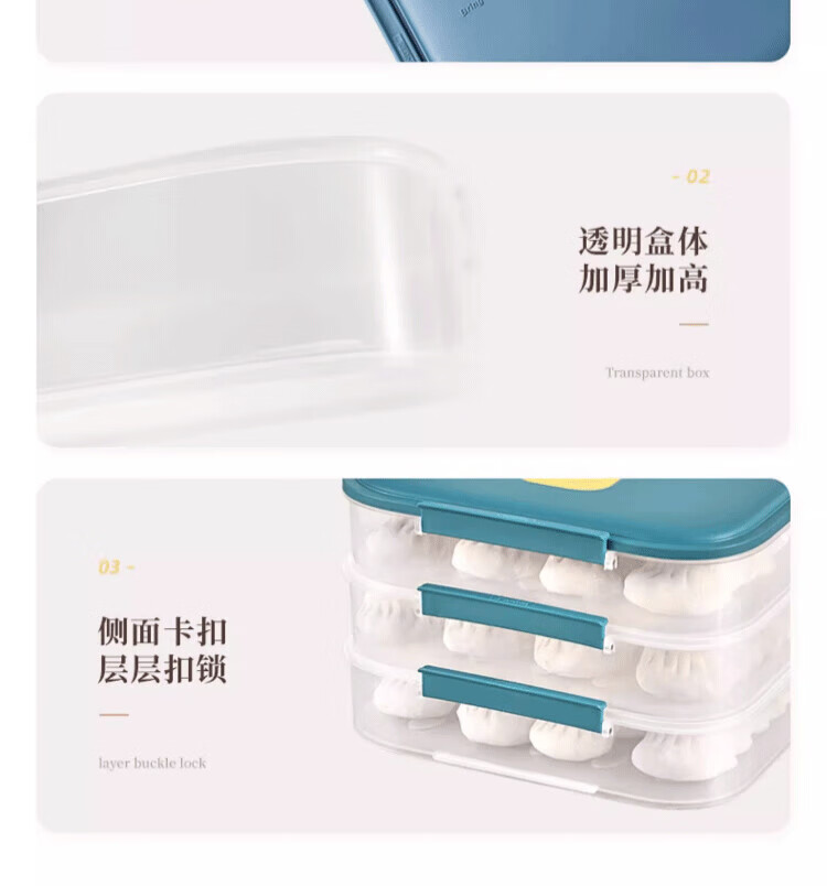 Wild pigeon dumpling box food-grade freezing special sealed crisper dumplings and wontons quick-frozen home kitchen refrigerator storage box dark blue 2 layers can hold 120 dumplings default