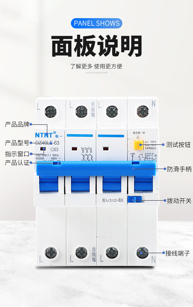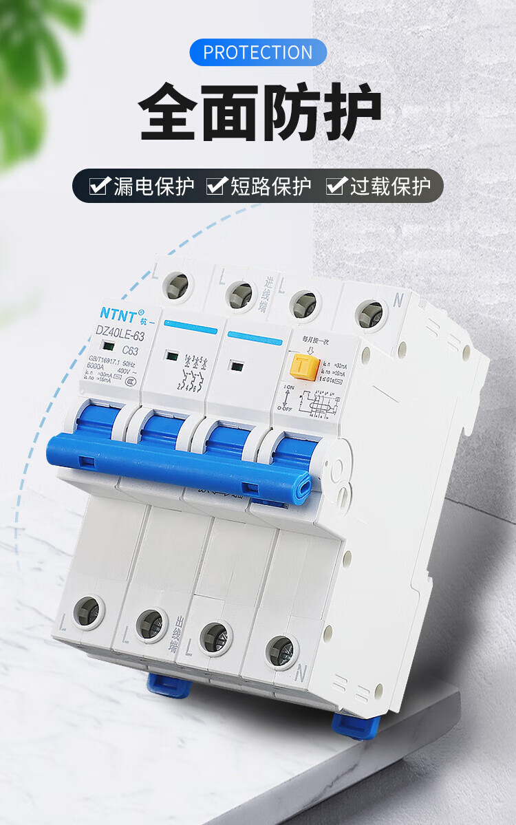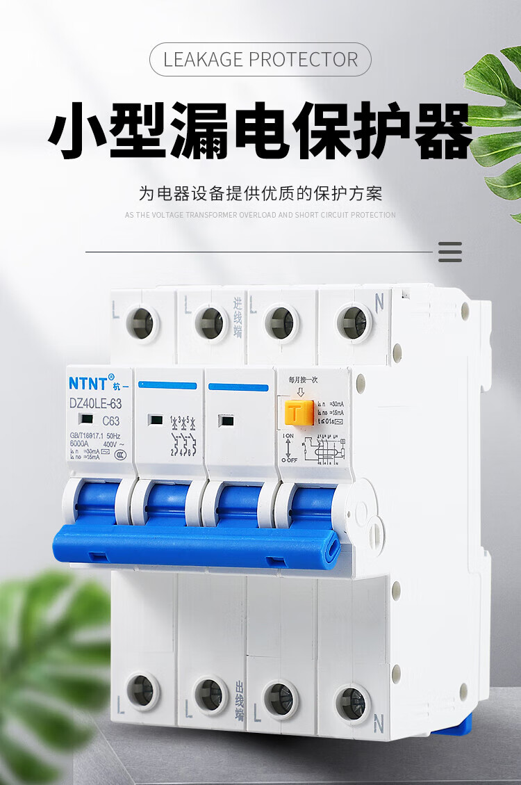 Air switch with leakage protection 4P 380V leakage can be turned off 63A three-phase four-wire integrated air leakage protection 63A 4p