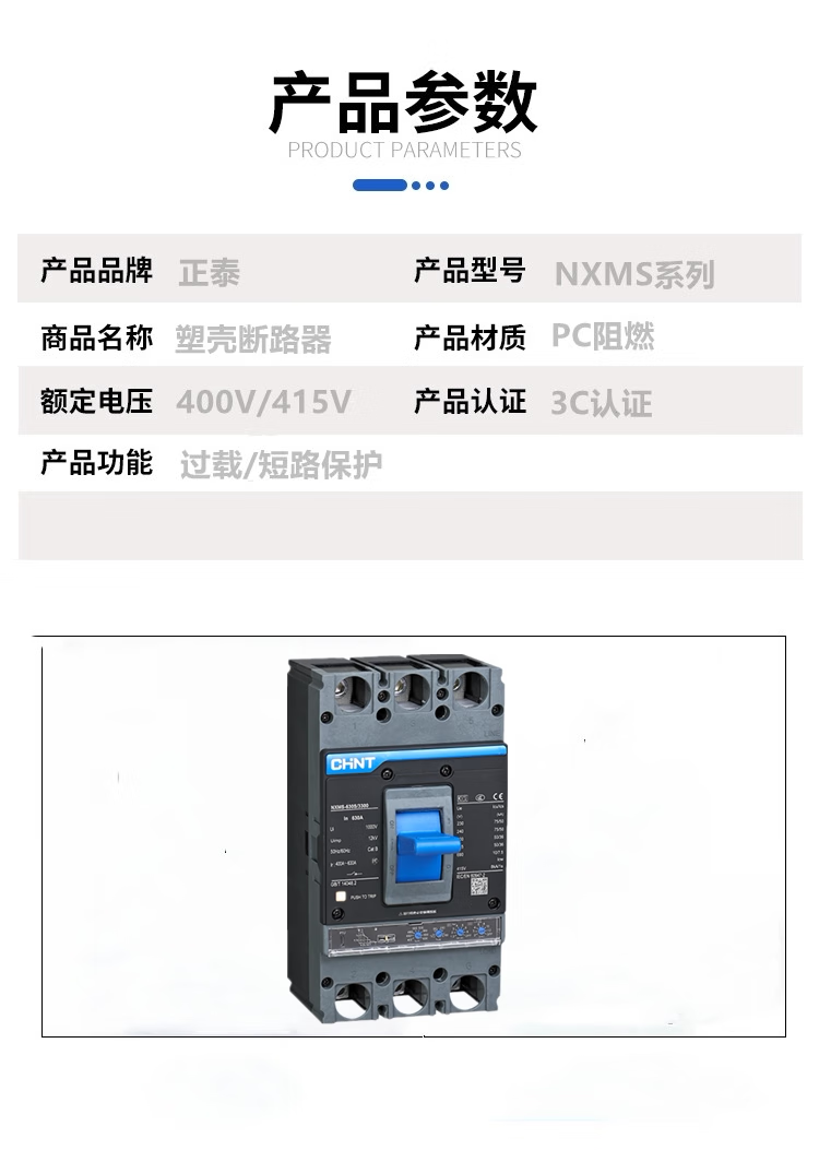 Chint molded case circuit breaker 3P NXMS-160A 250A 400A 630A 1000A 1250A1600 NXMS-630H/3300 630A