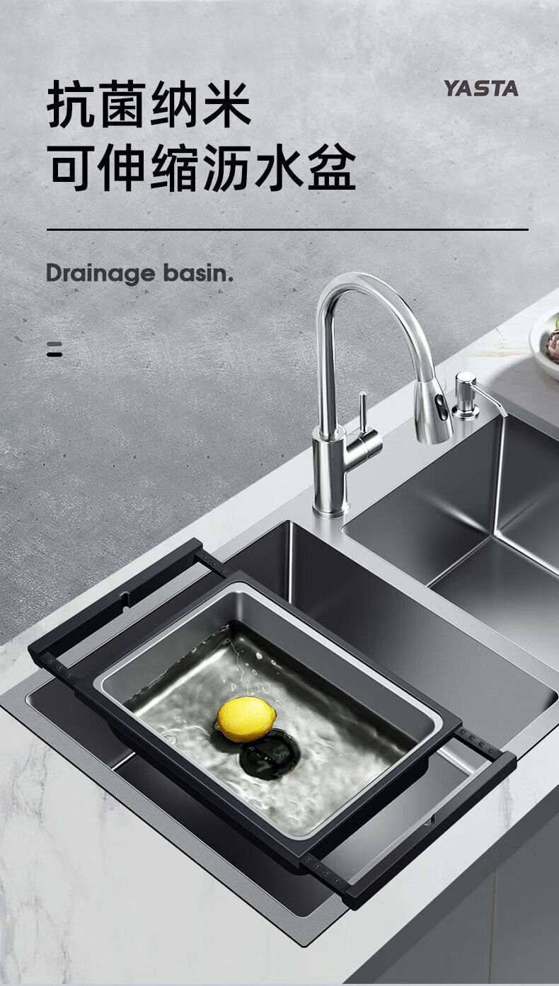 Ye Yu kitchen sink drain basket retractable storage rack basin basin sink frame stainless steel sink black