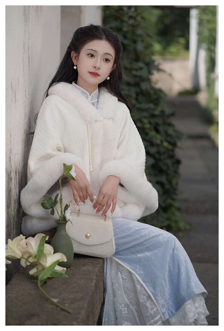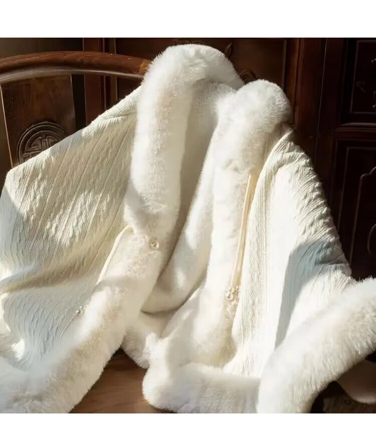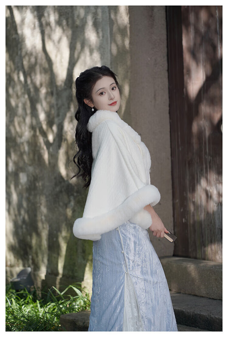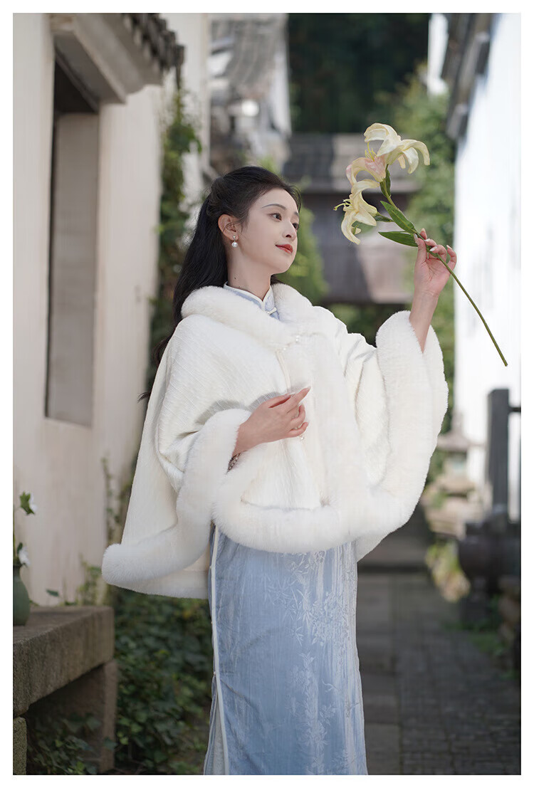 First New Chinese Style Plush Collar Autumn and Winter Thickened Cloak and Shawl with Cheongsam and Republican Style Warm Outer Noble Women's Cardigan White One Size Thickened Suitable for 80-160 Jin