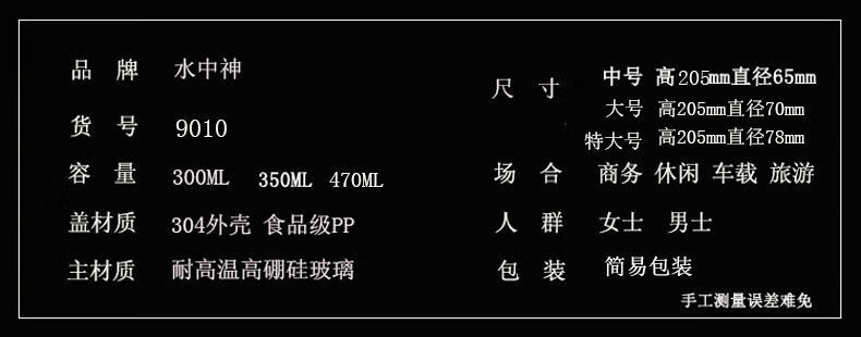 Water God Water Cup Water God Glass Double-layer Thickened Insulated Tea Cup 1ml Yufeng-300ml