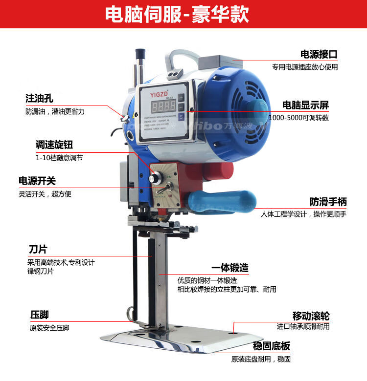 Dongqi computer servo electric scissors cutting machine high power vertical straight knife cloth cutting machine cutting knife cutting bed electric scissors high with 5 inches 370W cutting height 0-9CM