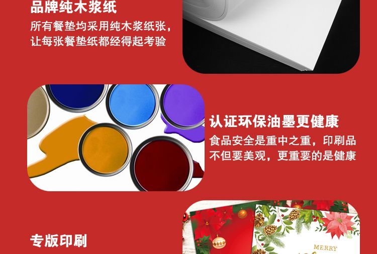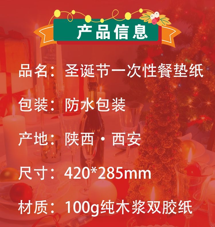 Fantasy Christmas placemat disposable placemat paper Western food party Christmas table mat paper household thickened table paper Merry Christmas 100 sheets