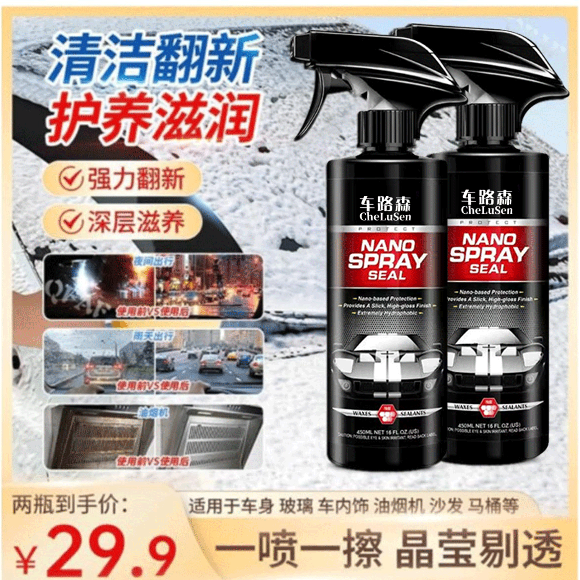 Buy 1 get 1 free concentrated refurbishment care agent, spray and wipe to remove stains, renovate old car into new car WAC-L buy 1 get 1 get 2 large bottles