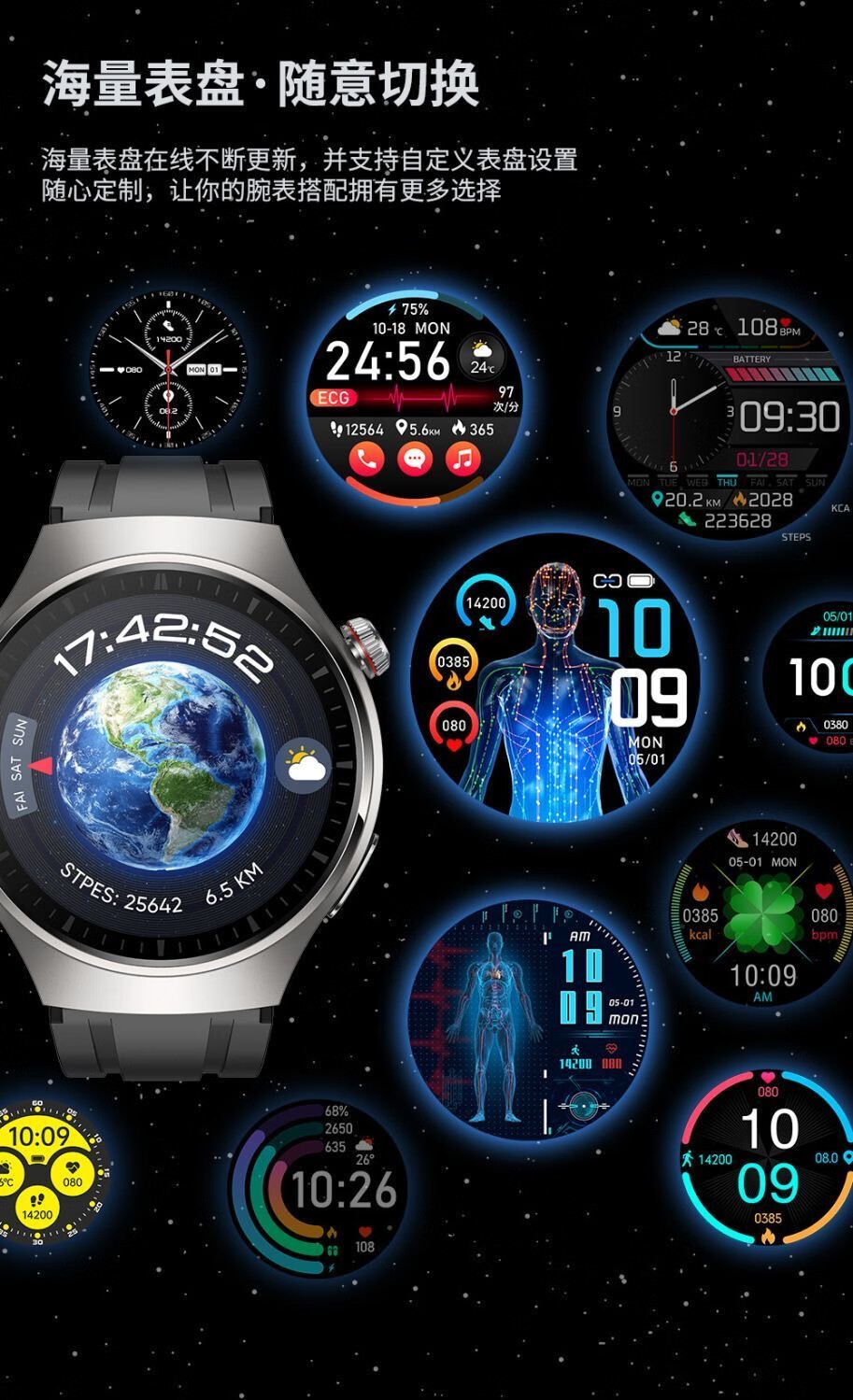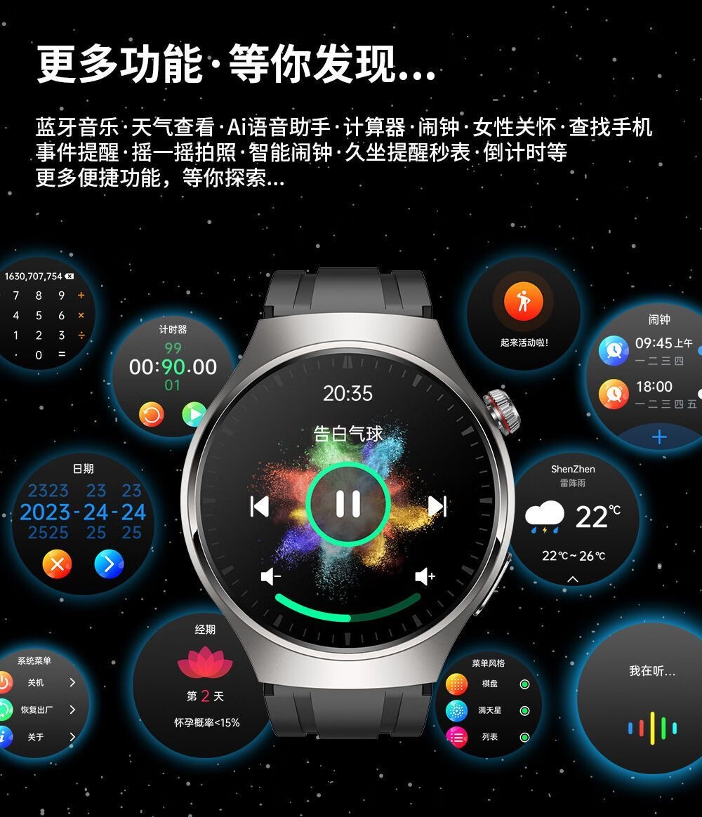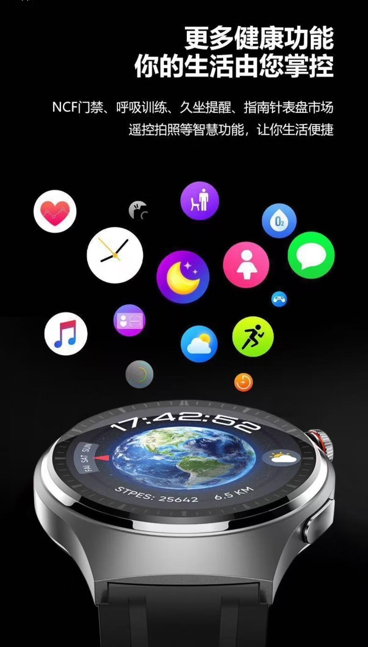 German smart watch Huawei suitable for nfc payment function blood sugar watch measures blood sugar blood pressure uric acid blood oxygen sports all-in-one machine black silver disk unisex jet black accurate uric acid blood sugar blood sugar blood pressure three high test
