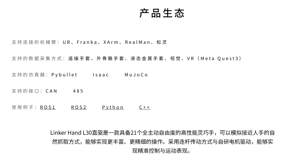 LINKERBOT dexterous hand L30 LinkerHand direct-drive robot high-performance dexterous hand link transmission intelligent bionic hand robotic arm five-finger dexterous hand robot gripper high-durability dexterous hand work robot left hand