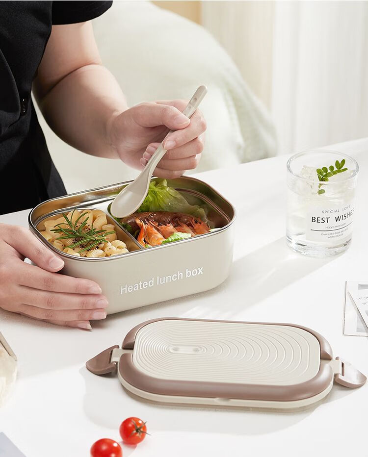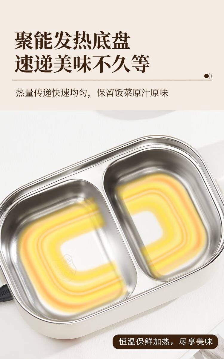 Xiaomi White Electric Heated Lunch Box Constant Temperature 304 Portable Office Workers Dormitory Student Lunch Box No Water Filling Heated Insulated Lunch Box Milk Coffee Color 304 Constant Temperature Lunch Box 1.2L