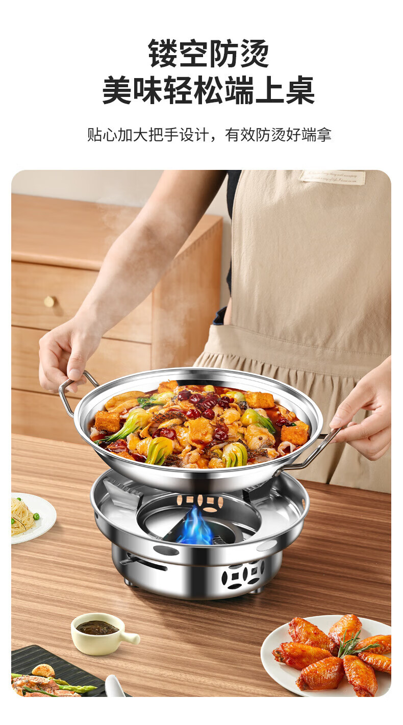 MAXCOOK same style dry pot pot, commercial alcohol stove, hotel special stainless steel 316 food grade household alcohol stove, small for 3-4 people (with lid) 316 steel dryer 11 inches