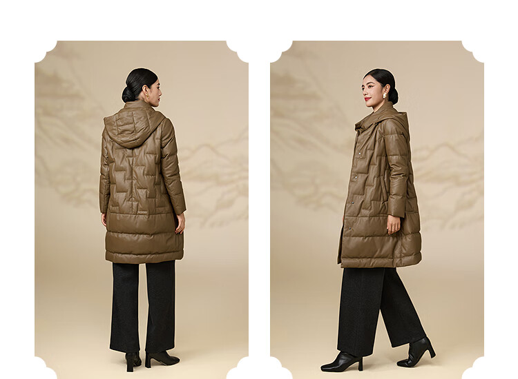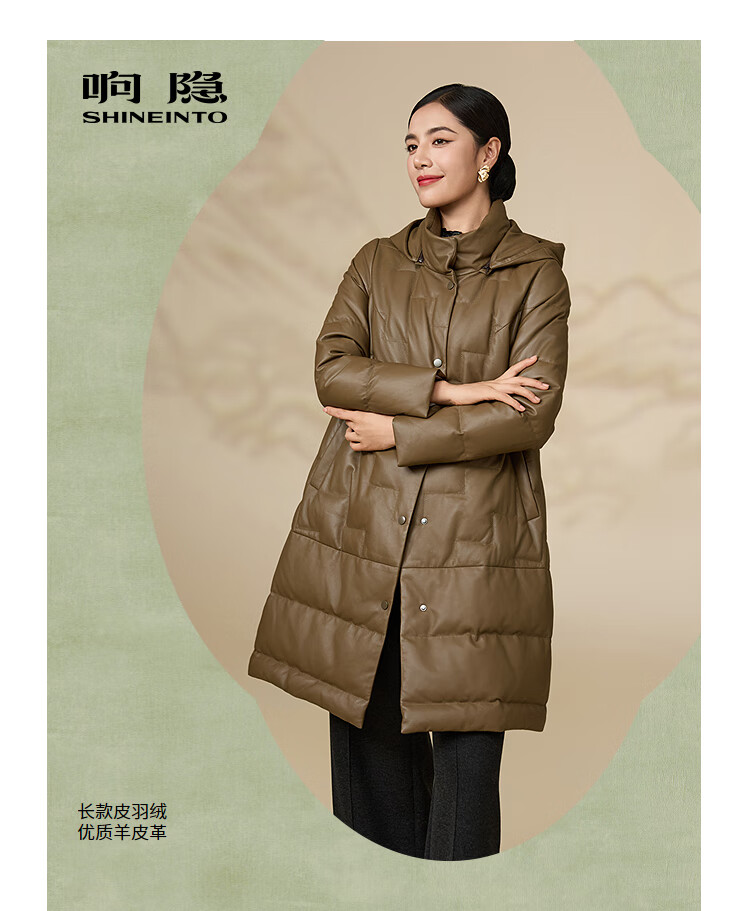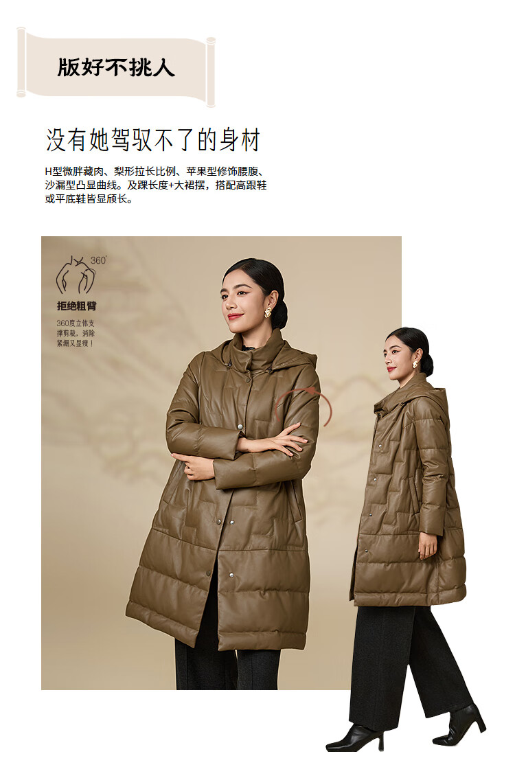 Xiangyin shopping mall same style thick leather long leather down 2545113010 tea brown M