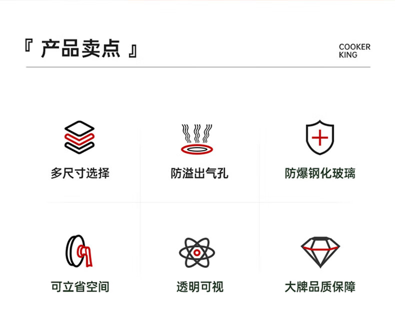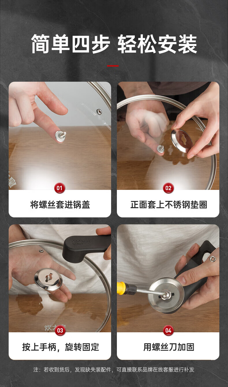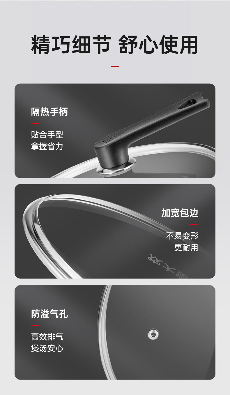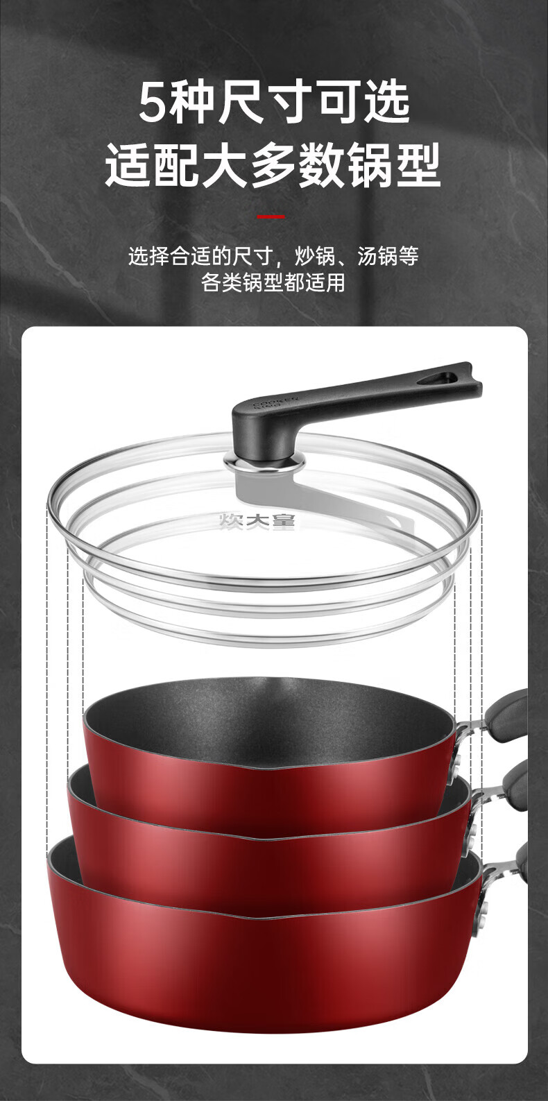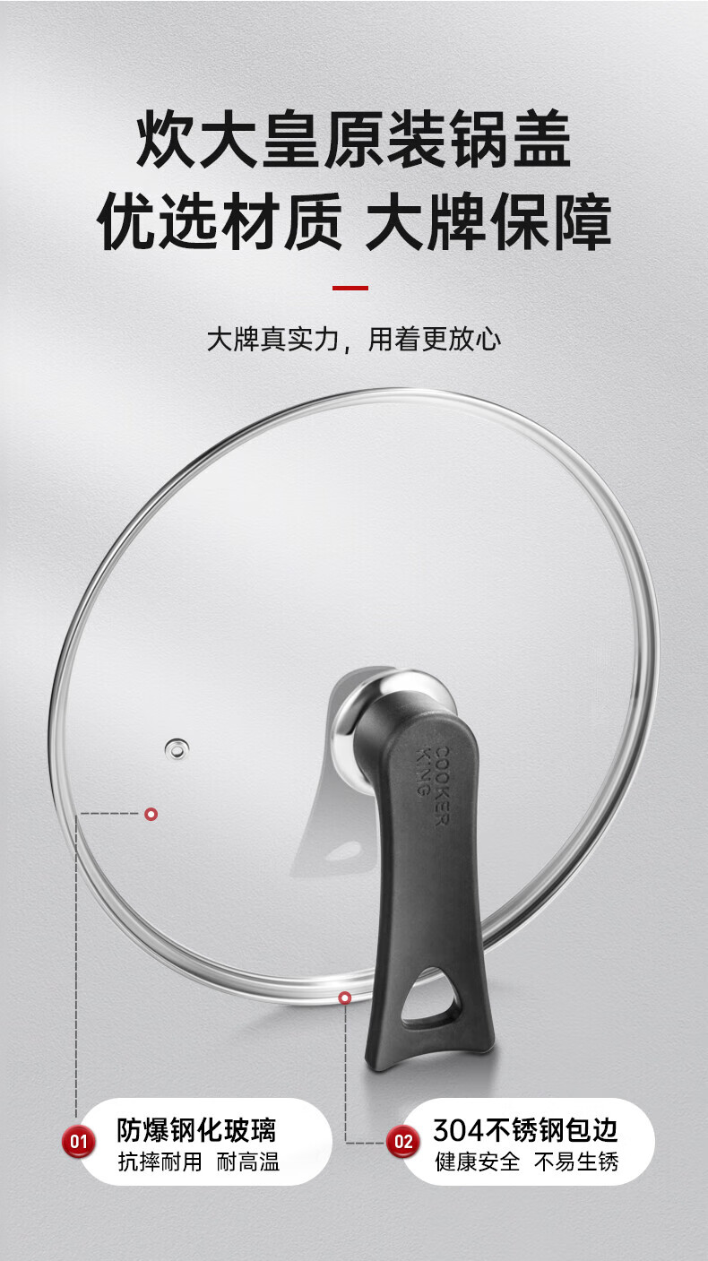 Cooking King can stand up with visible glass lid and handle, wok lid 26cm, 304 stainless steel edged pot lid for frying, hot pot and steaming, can stand upright explosion-proof pot lid 26cm