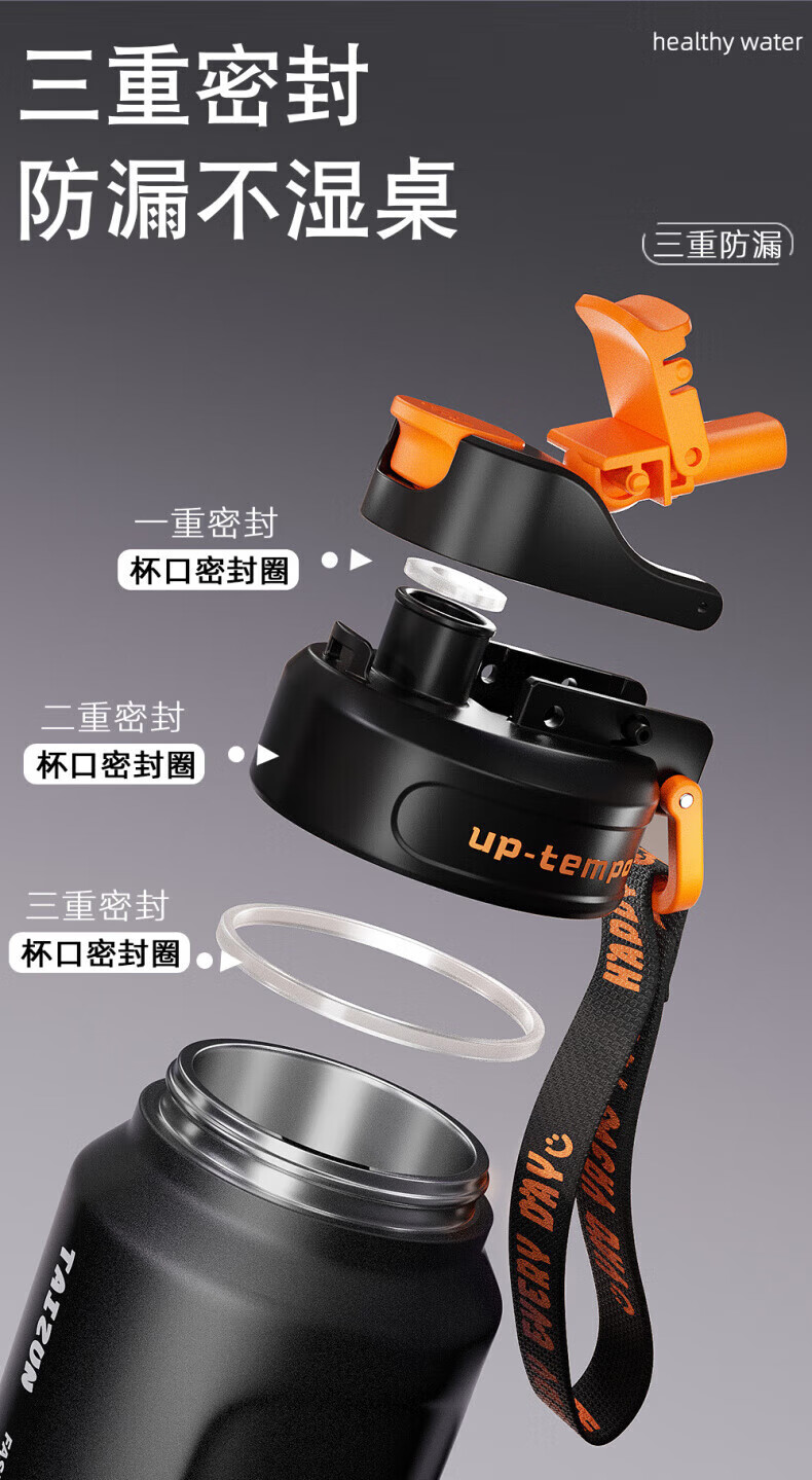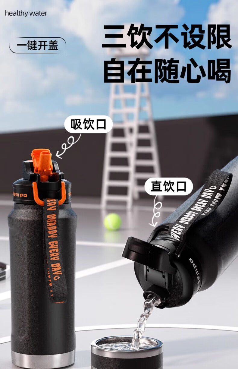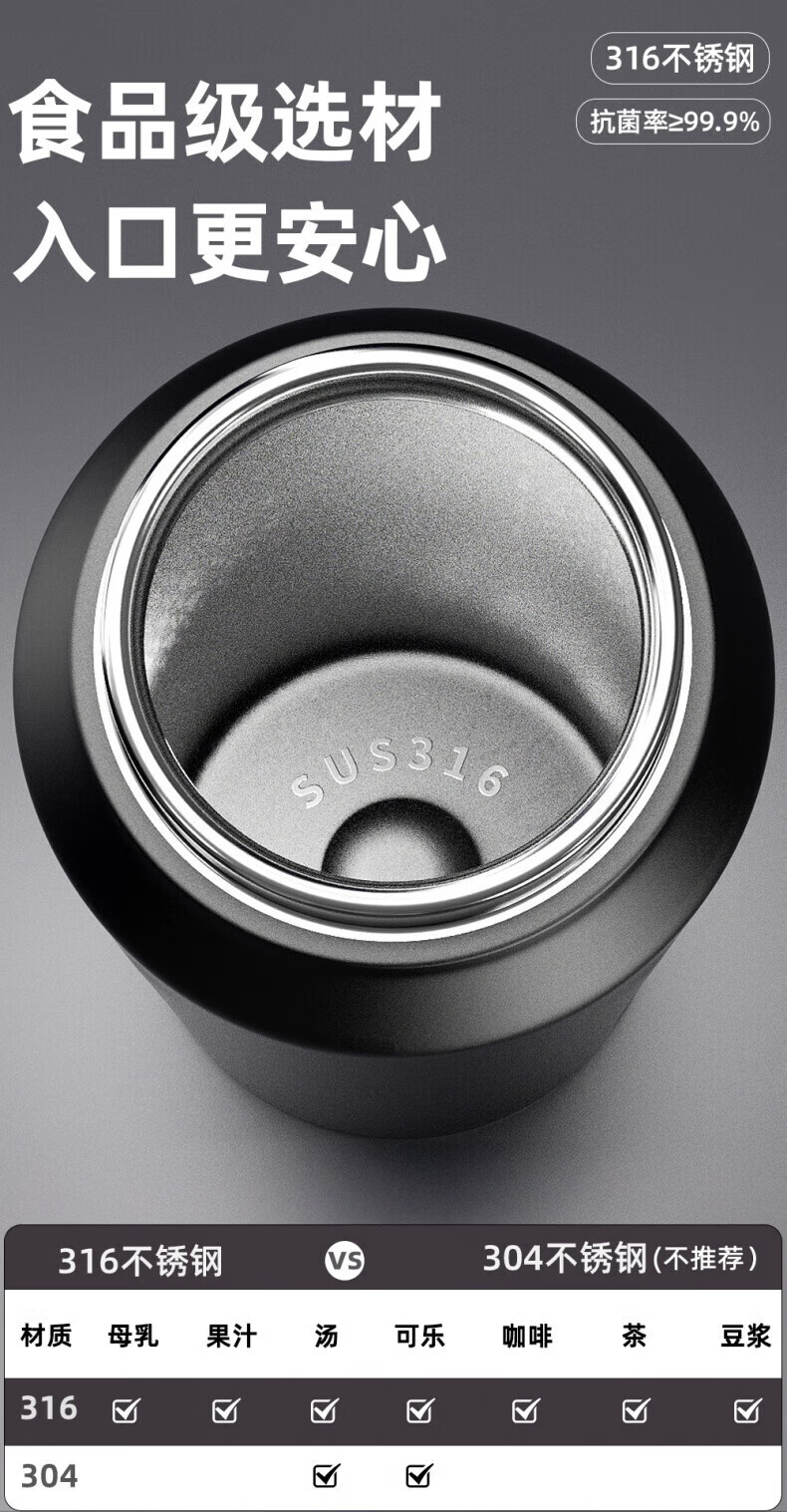 RICH YOUR HOME German quality ton barrel thermos cup large capacity 1.5316 stainless steel straw men's style large capacity straw sports black + 316 inner tank 850ml