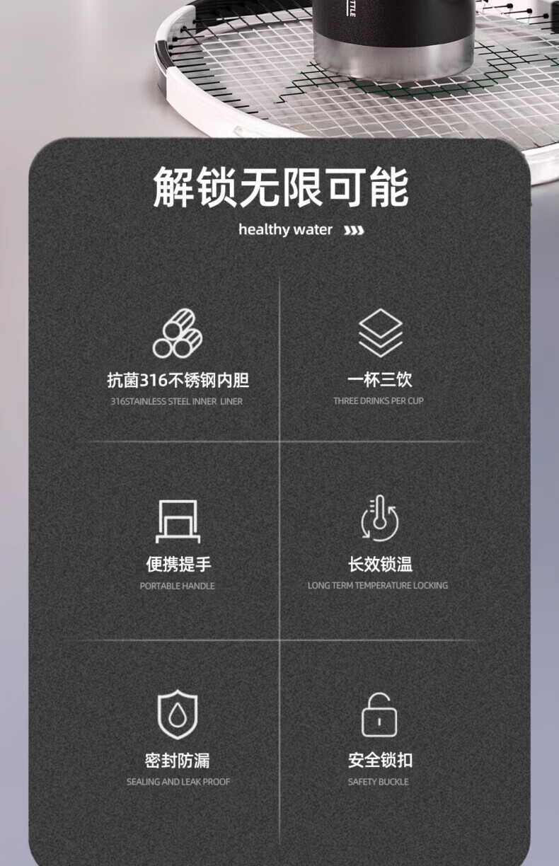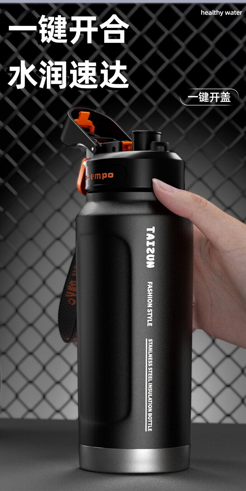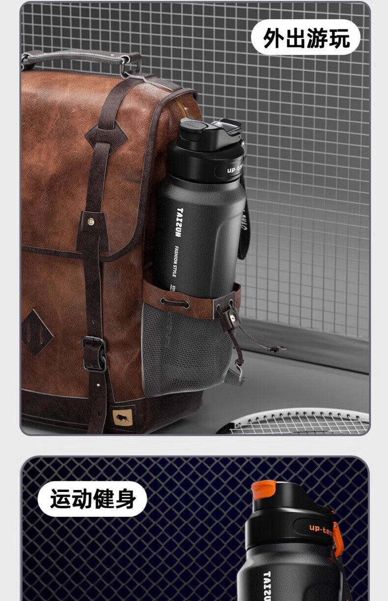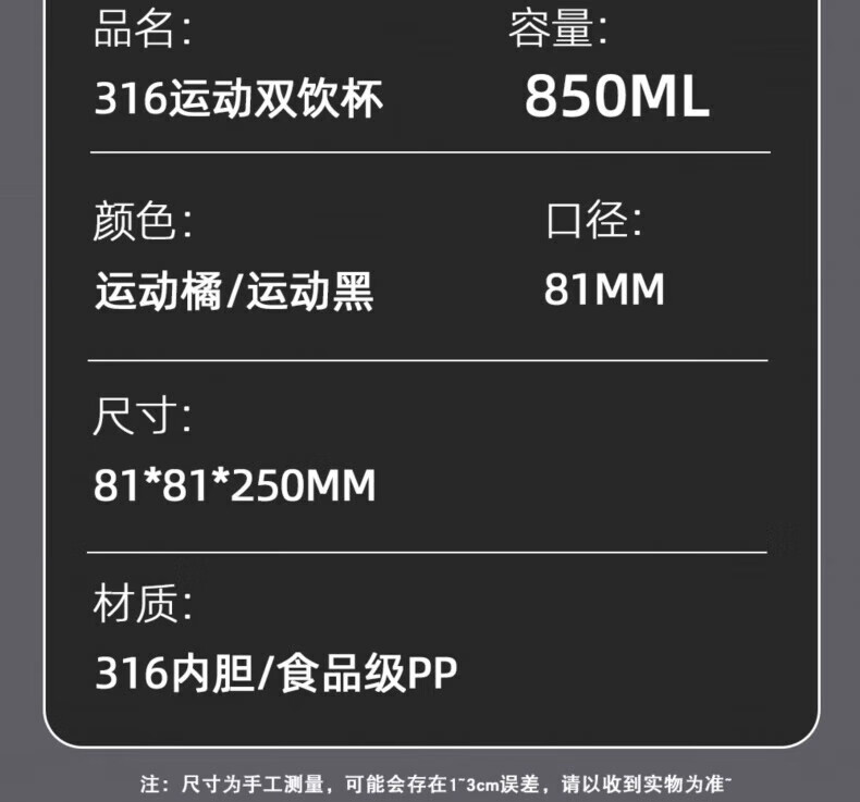 RICH YOUR HOME German quality ton barrel thermos cup large capacity 1.5316 stainless steel straw men's style large capacity straw sports black + 316 inner tank 850ml