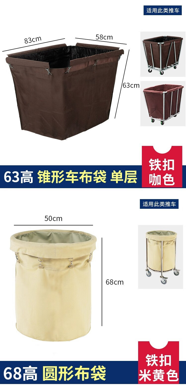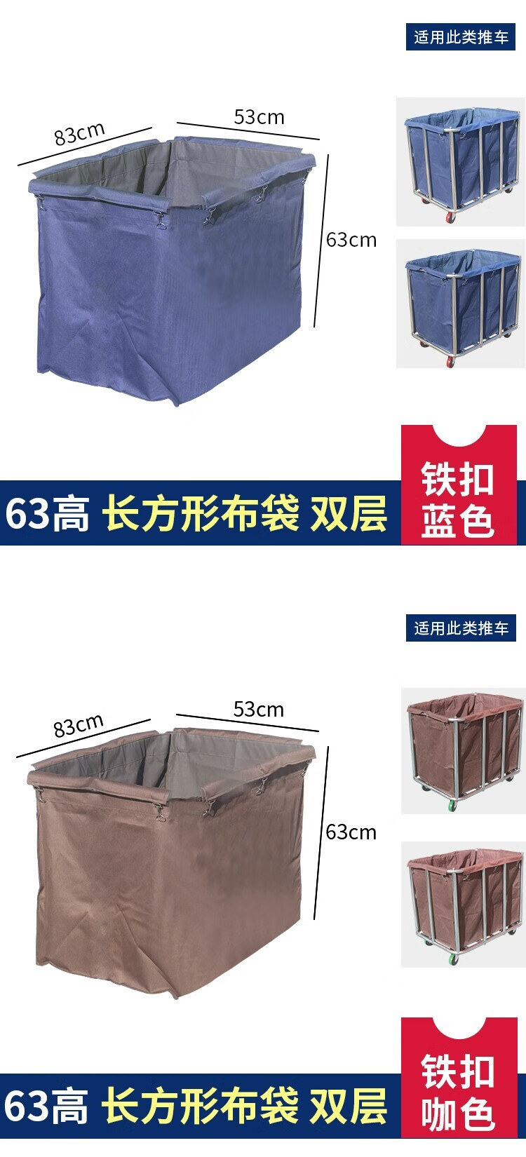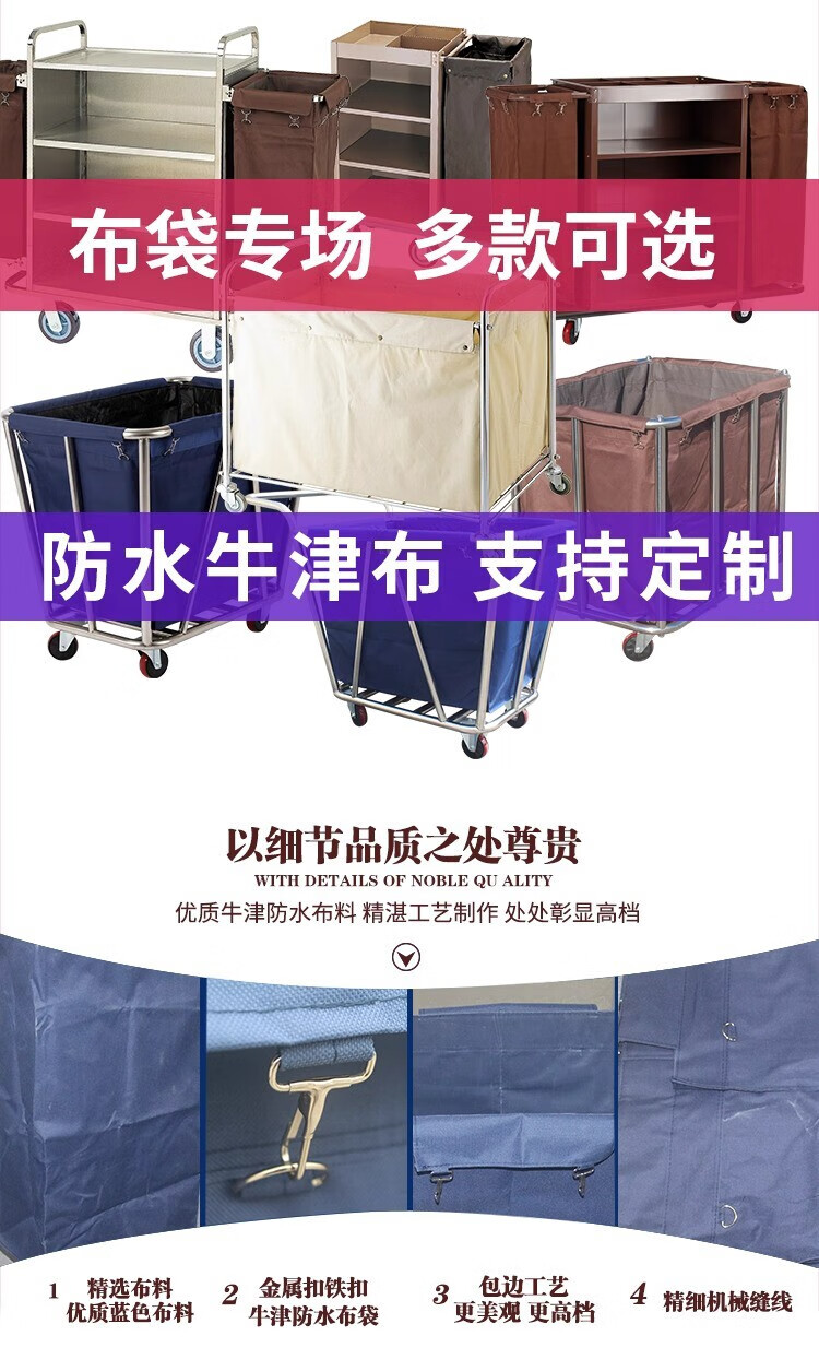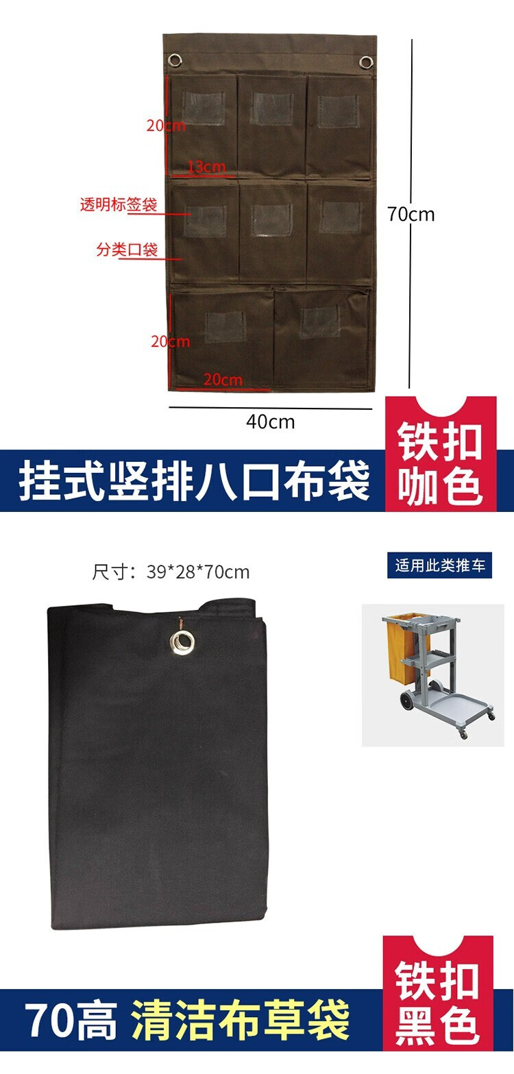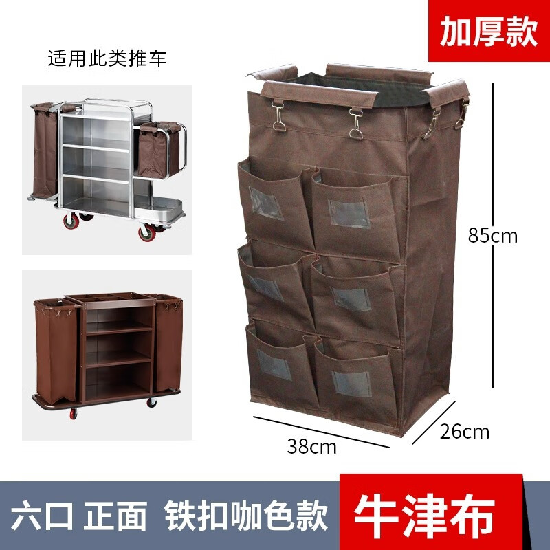 AIBODUO other cleaning tools hotel linen cart bag room work cart linen bag cleaning garage door cart bag 50 high double-sided cart bag plastic buckle brown
