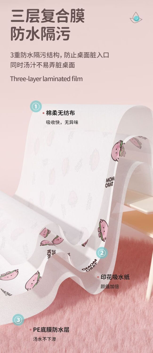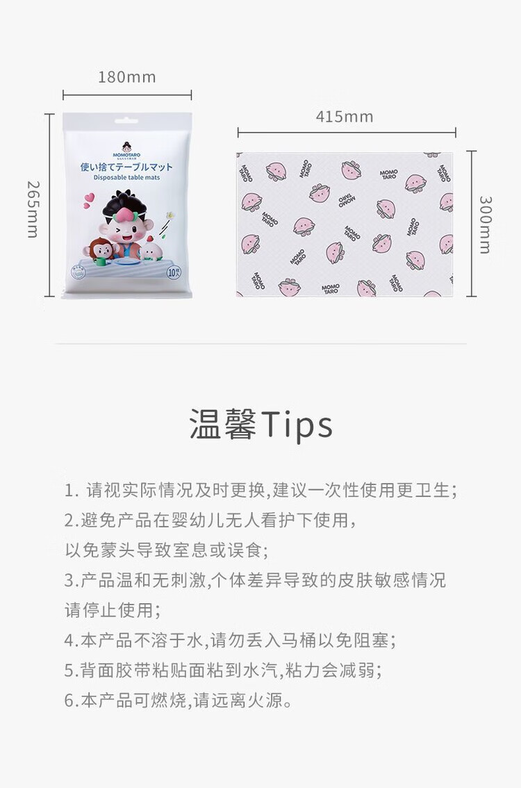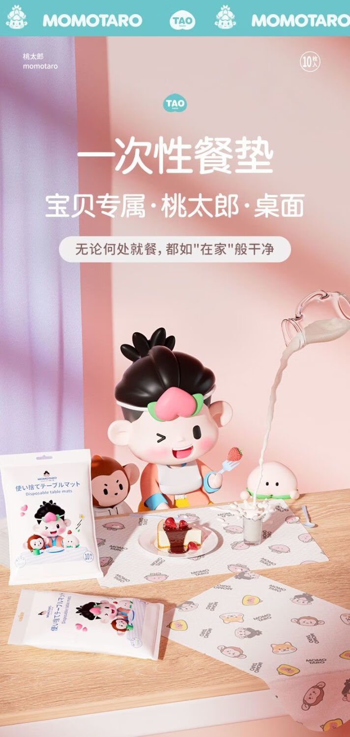 Momotaro disposable placemats portable out-and-out baby table mats oil-proof and waterproof toddler dining chair placemats tablecloth Momotaro placemats 30 pieces + sleeves 30 pairs