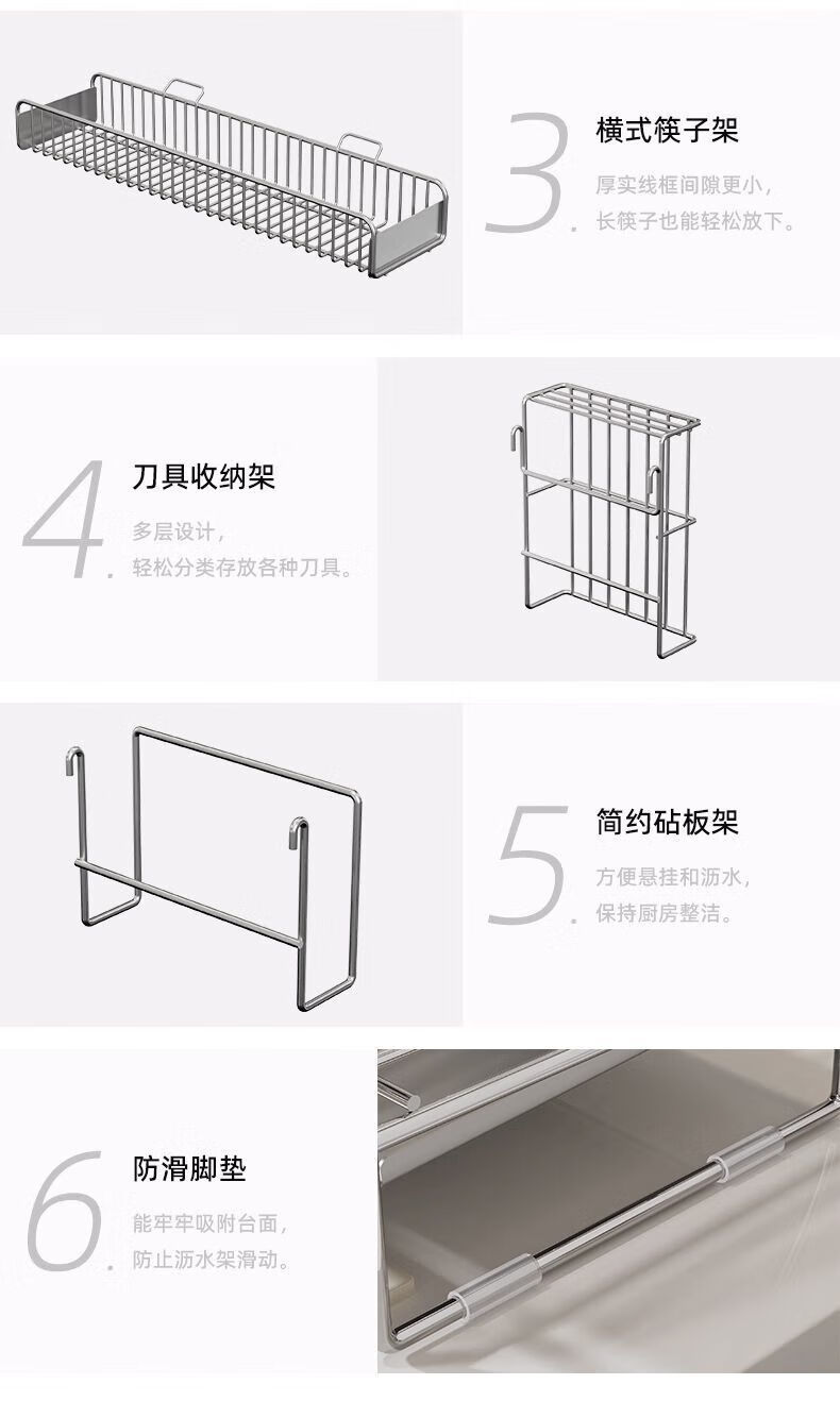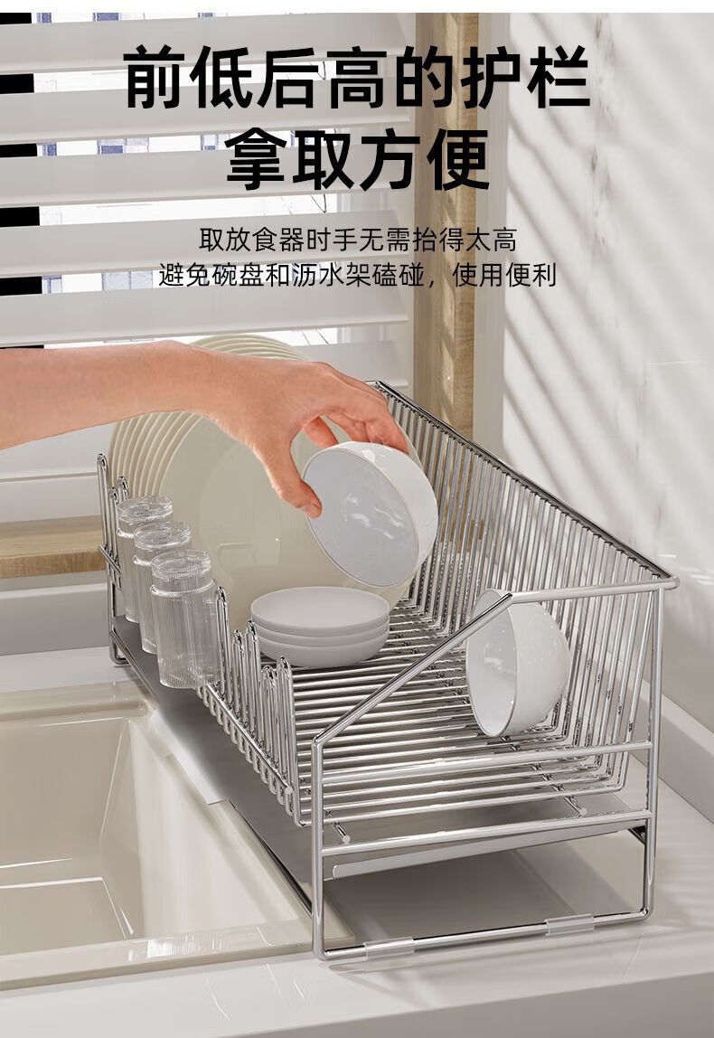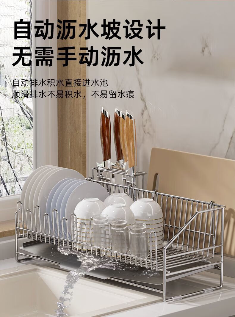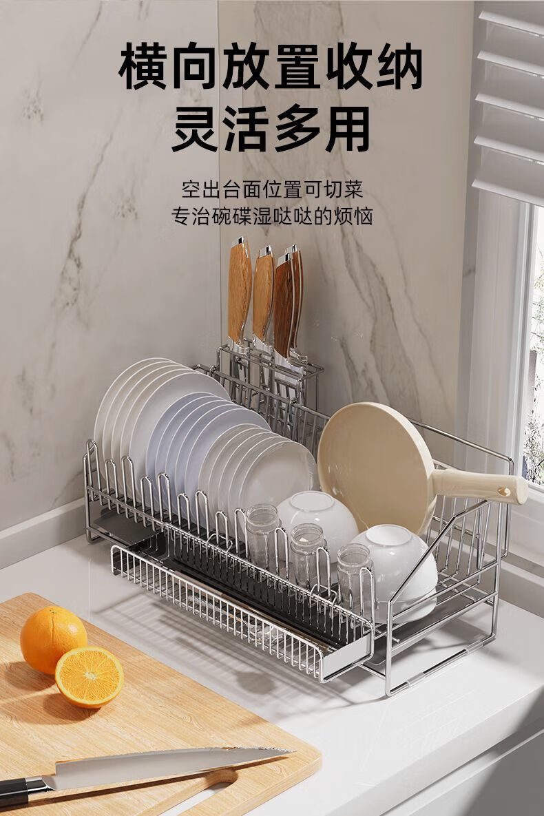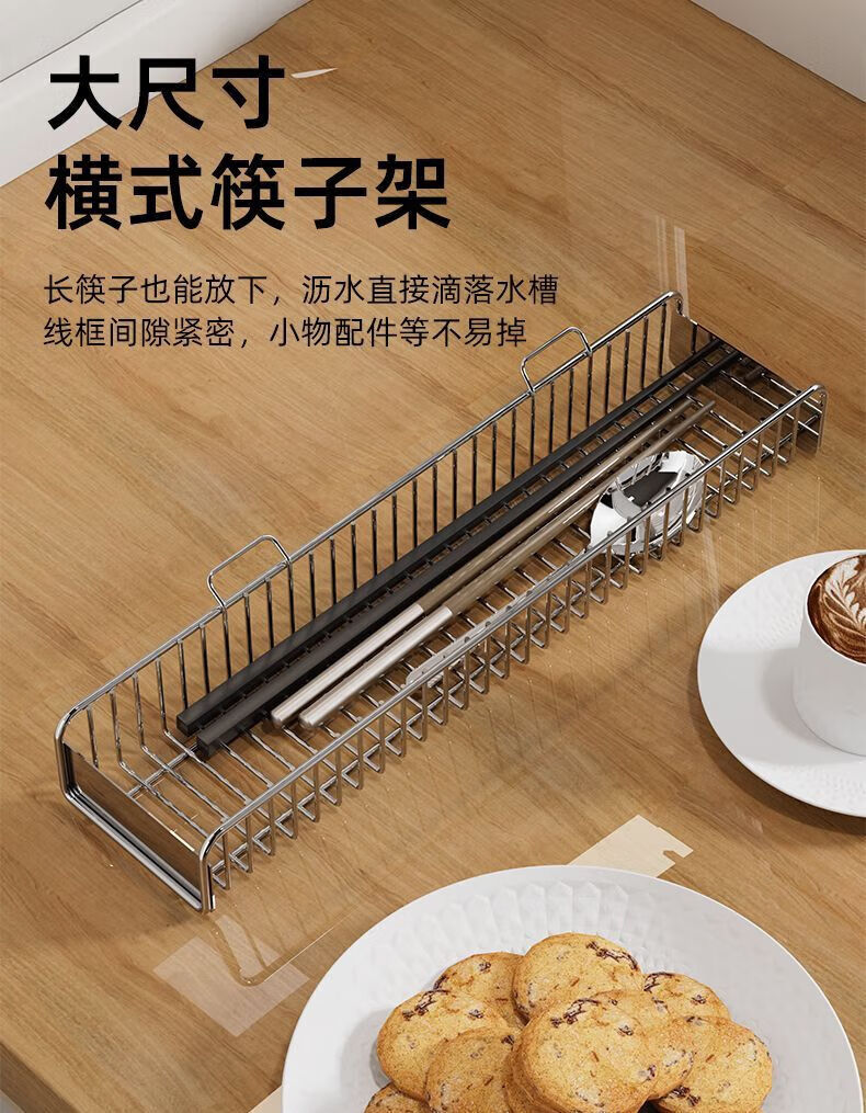 Vinoa Yilu drain rack stainless steel dish storage rack multi-functional household kitchen dishes drain basket stainless steel dish rack + chopsticks blue lengthened and widened