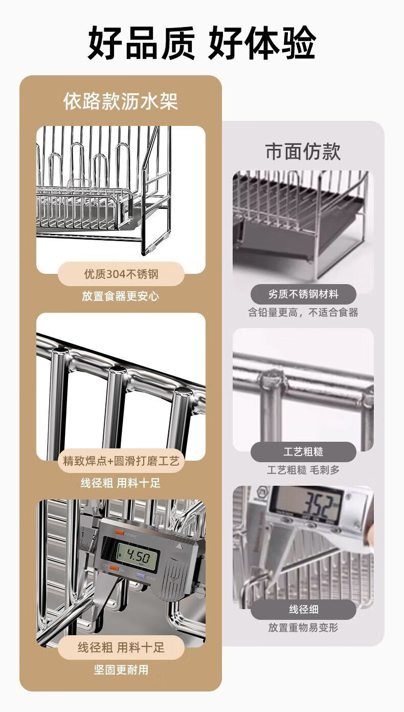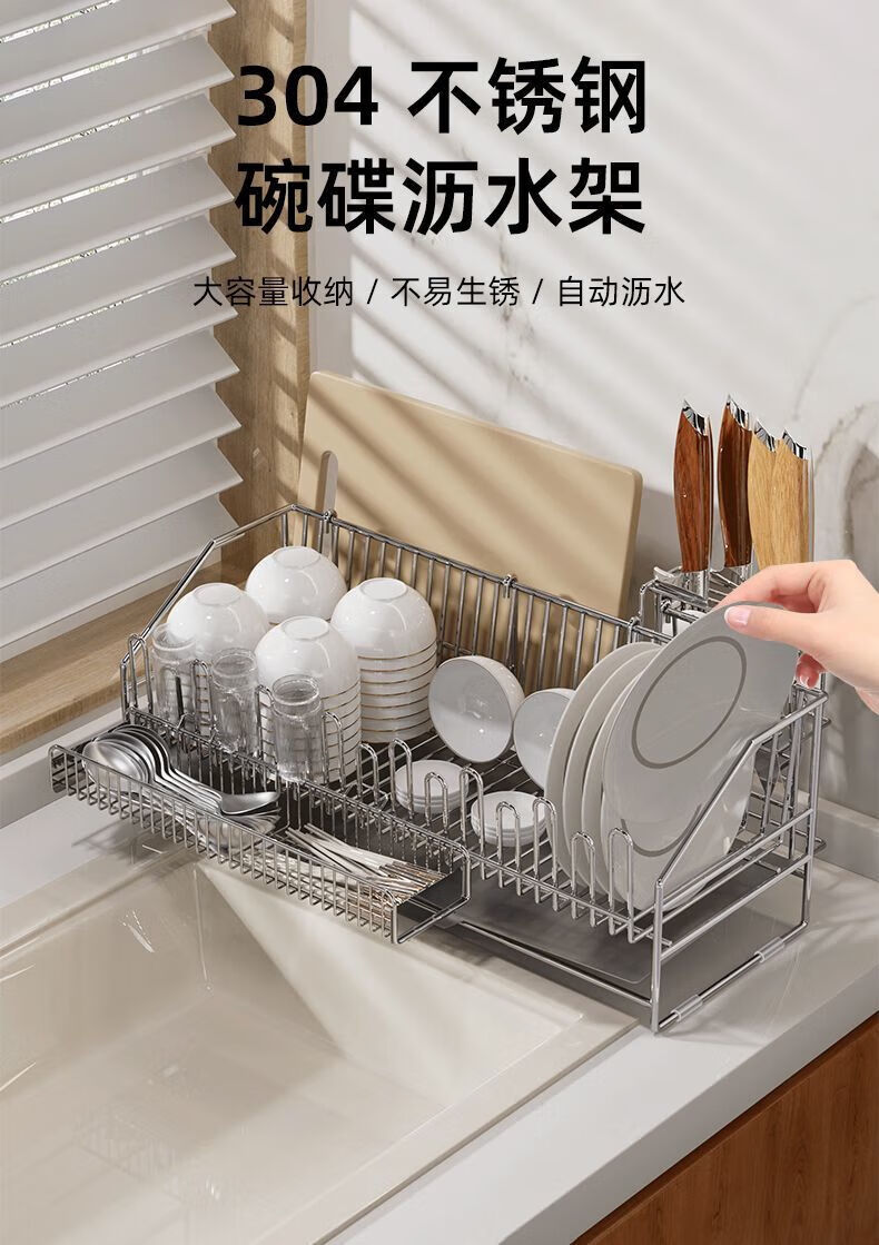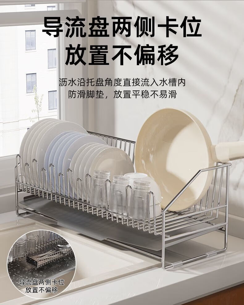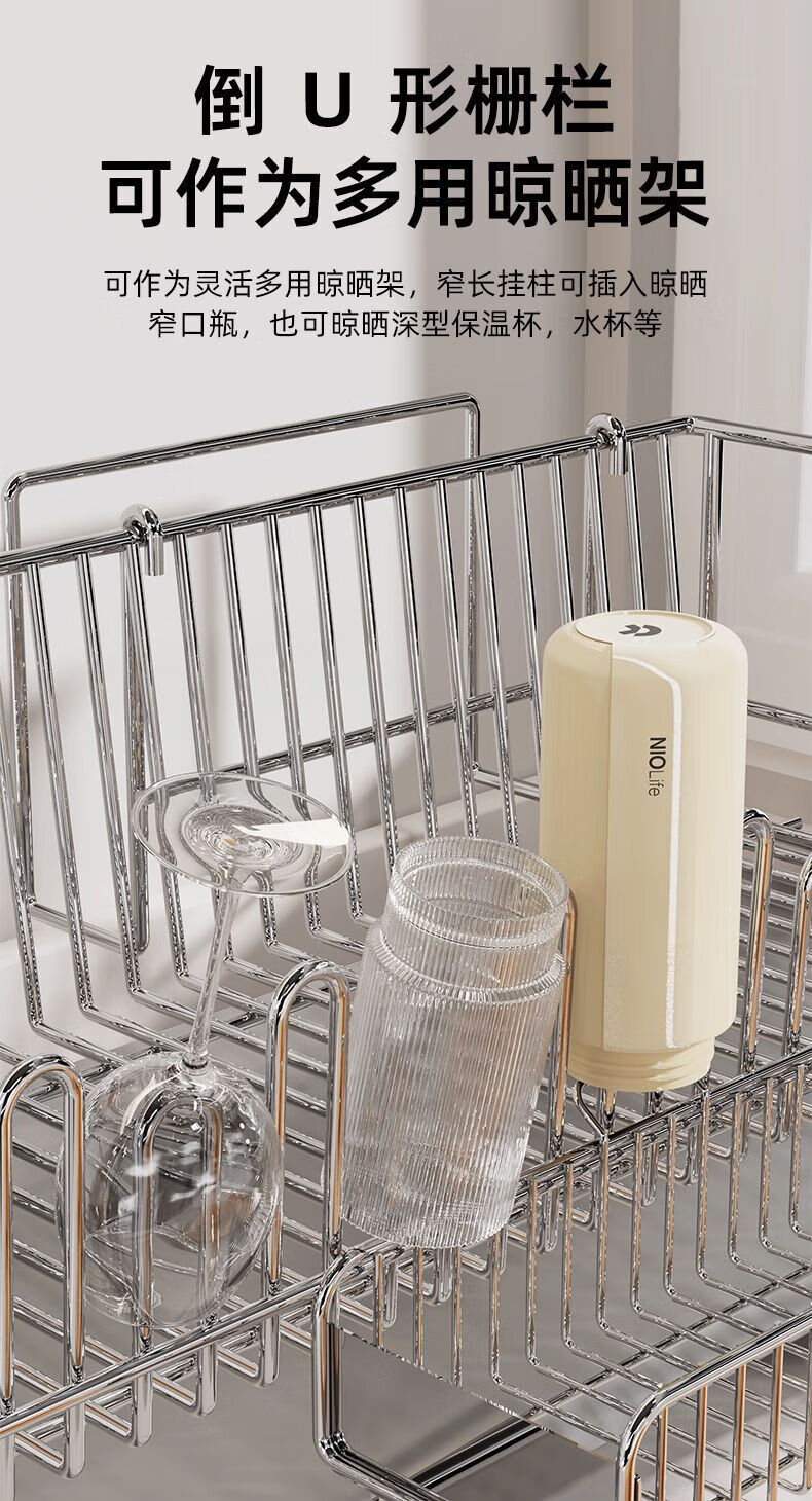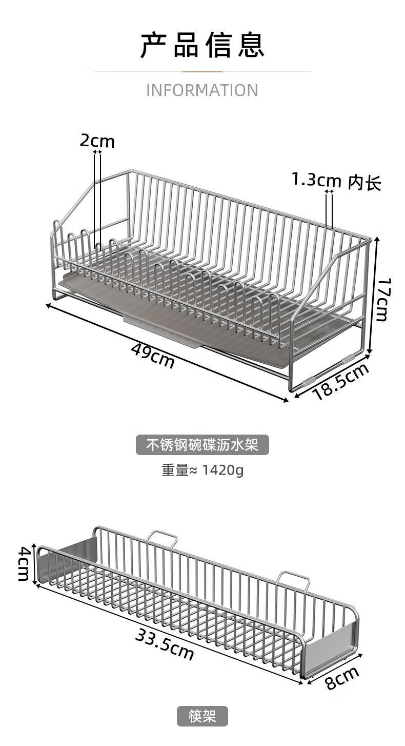 Vinoa Yilu drain rack stainless steel dish storage rack multi-functional household kitchen dishes drain basket stainless steel dish rack + chopsticks blue lengthened and widened