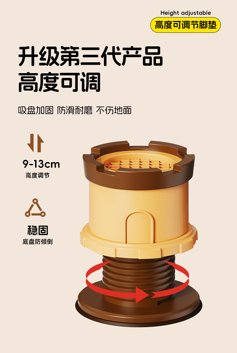 Beishi washing machine base washing machine rack base adapted to Haier Little Swan Midea Siemens washing machine rack base washing machine base elevated pulsator drum black 4 pieces adjustable height 9-13CM/TPR giant stable suction cup
