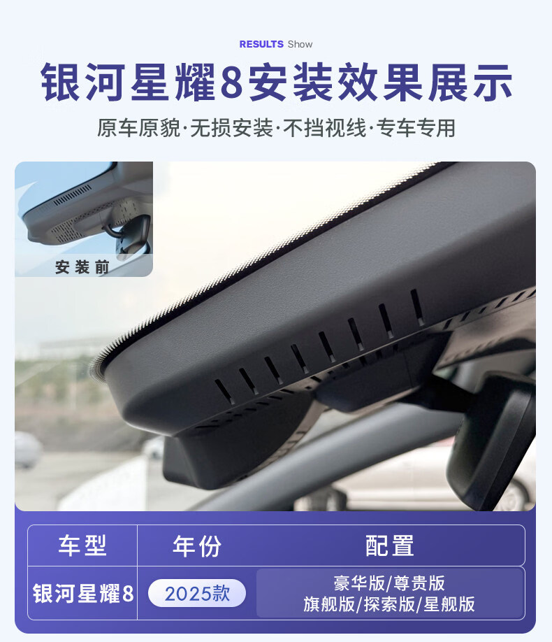 25 models of Geely Galaxy Xingyao 8 dash cam, car front and rear dual recording, special car dedicated cable-free 4k ultra-clear 2025 model 130km EM-i exclusive version 4K single lens 2160P + 64G card + AI smart capture