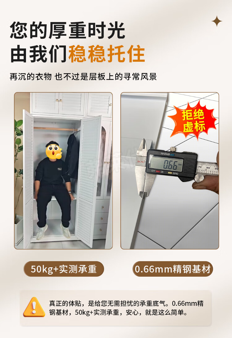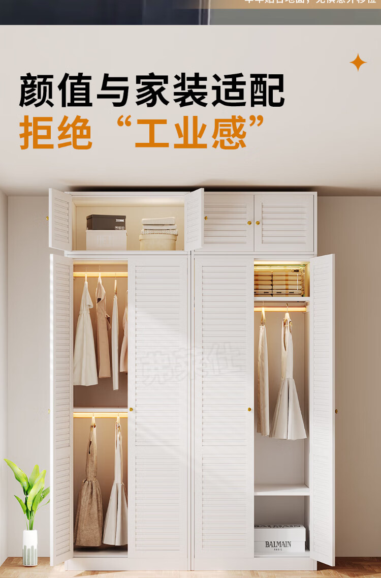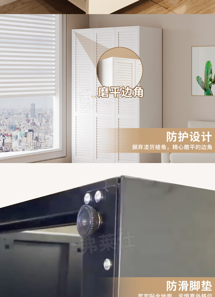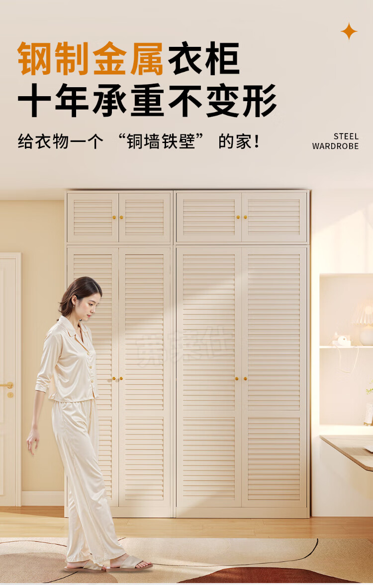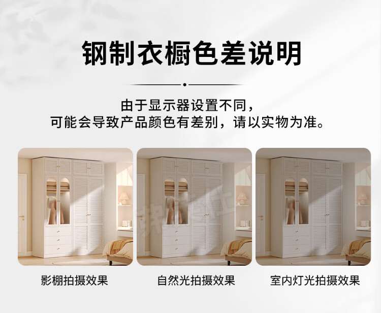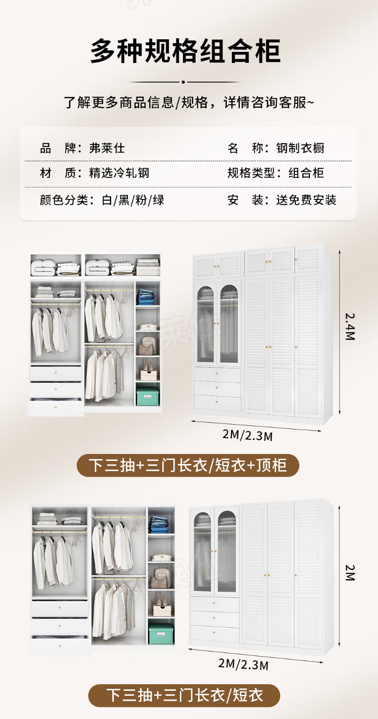 Fleish steel wardrobe French simple style bedroom wardrobe environmentally friendly formaldehyde-free storage cabinet household iron storage cabinet white 3-door long coat 1.18 meters wide