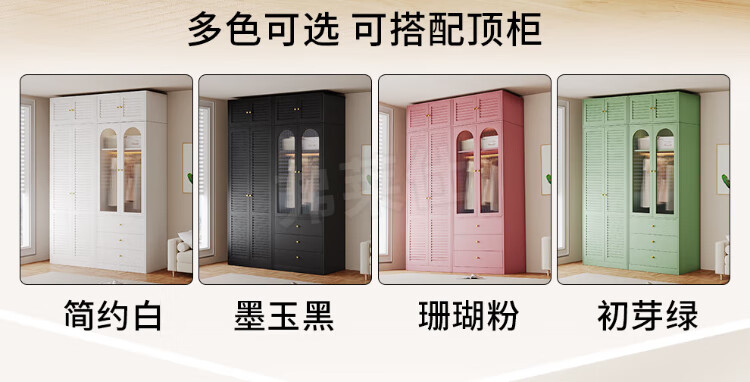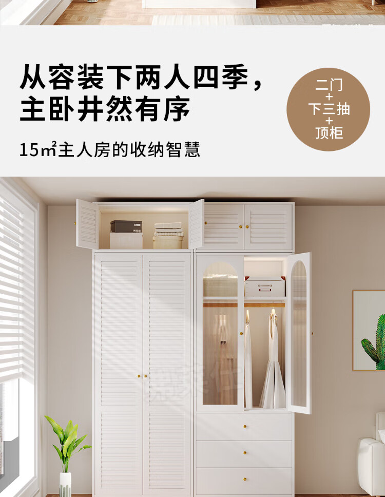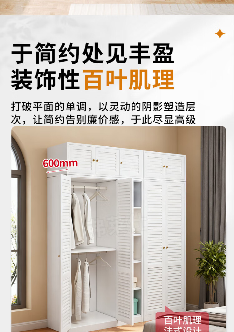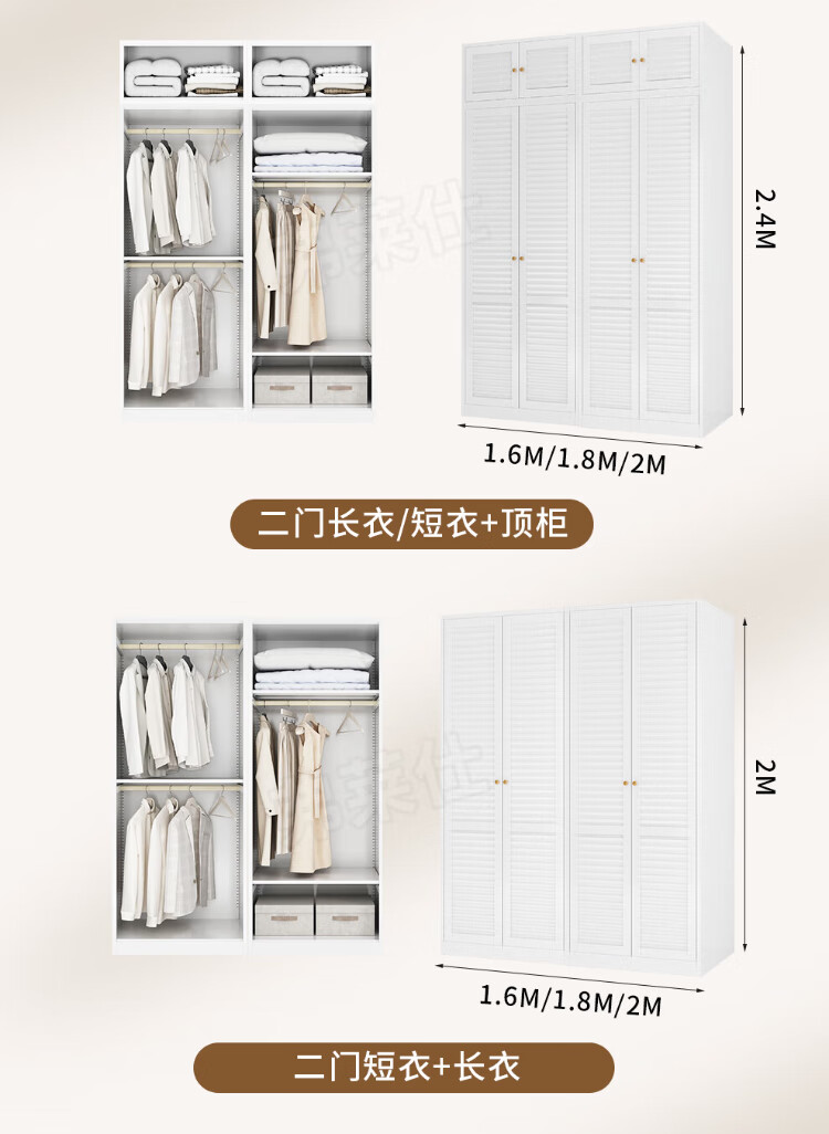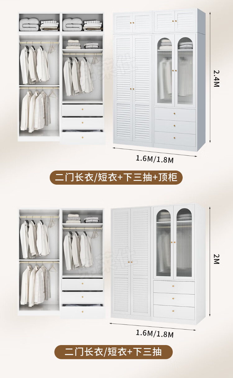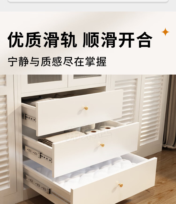 Fleish steel wardrobe French simple style bedroom wardrobe environmentally friendly formaldehyde-free storage cabinet household iron storage cabinet white 3-door long coat 1.18 meters wide