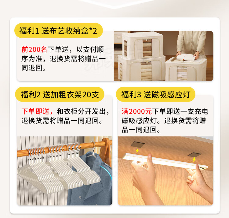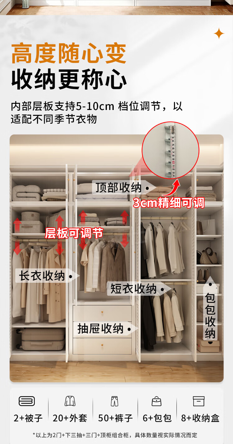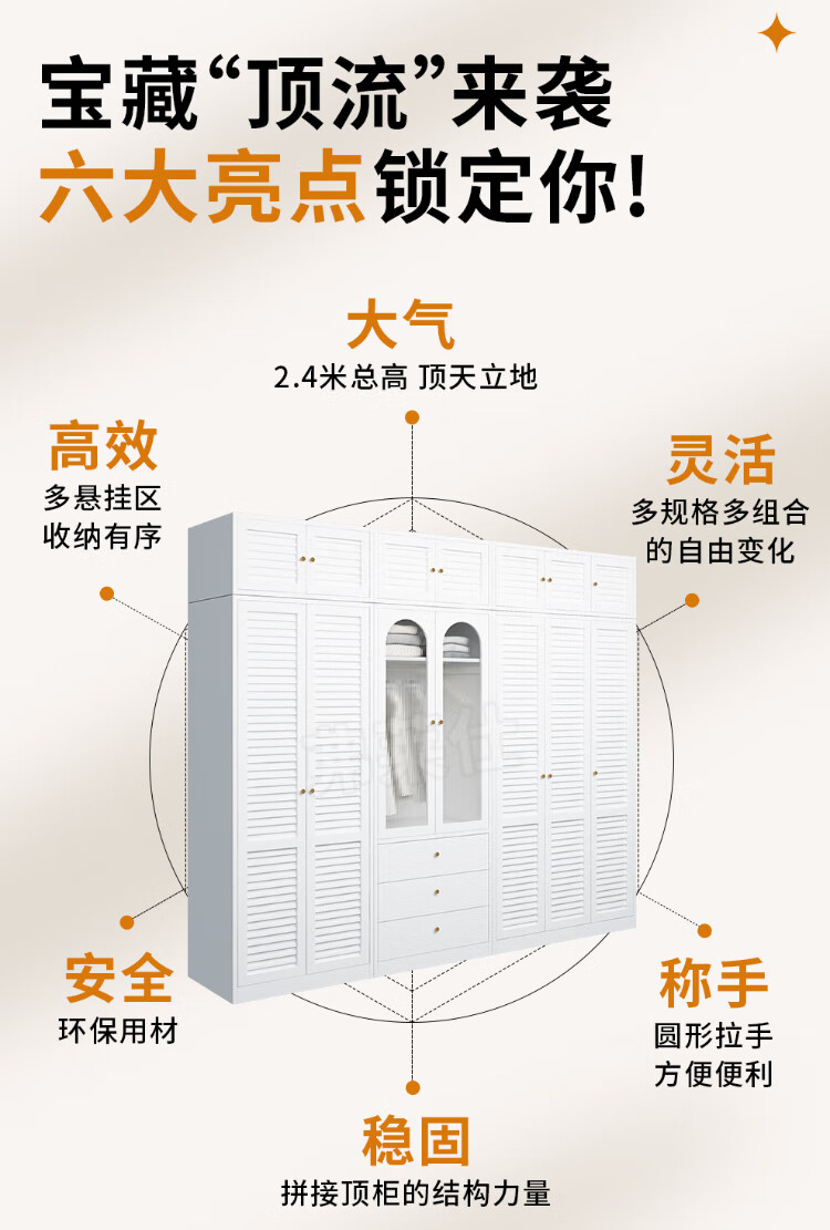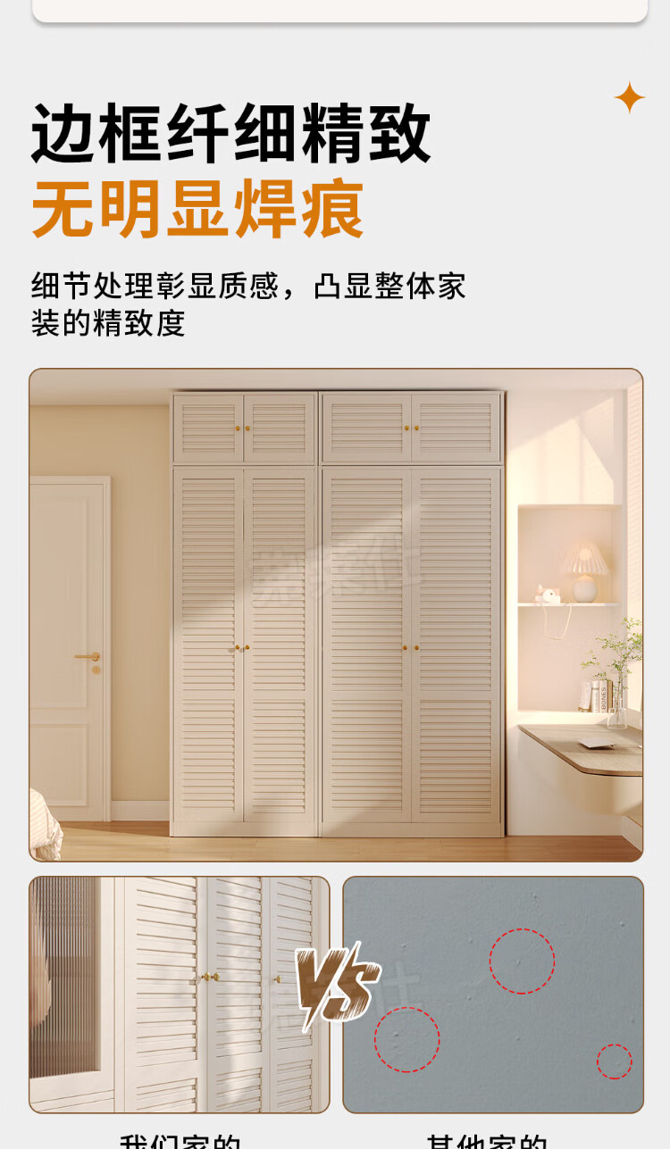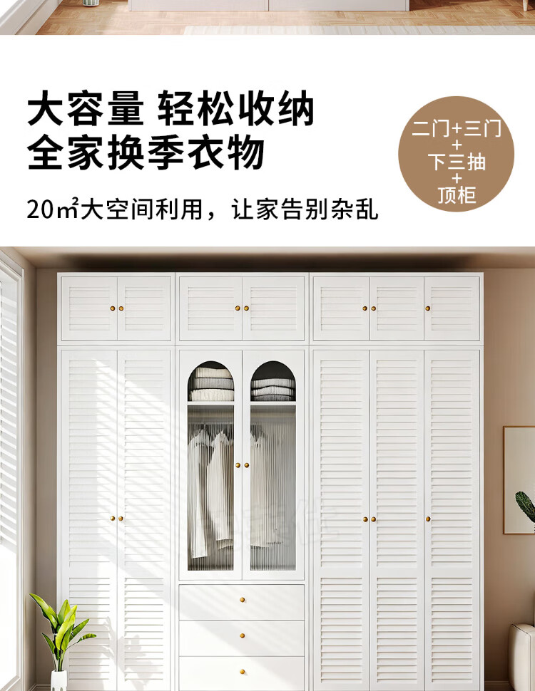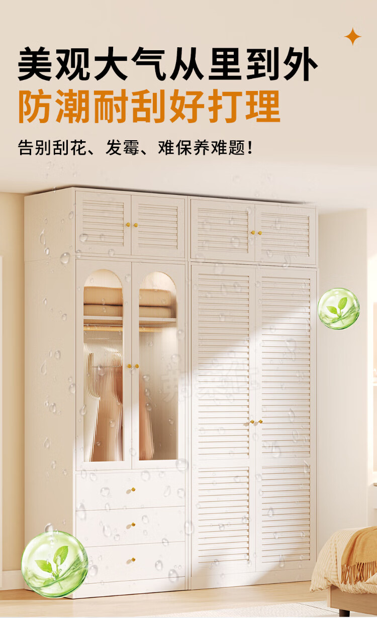 Fleish steel wardrobe French simple style bedroom wardrobe environmentally friendly formaldehyde-free storage cabinet household iron storage cabinet white 3-door long coat 1.18 meters wide