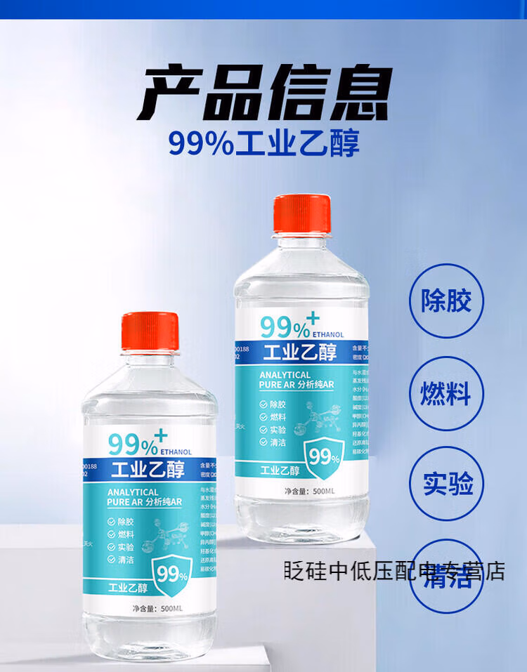 Qiaobolai Alcohol 100 Ethanol Anhydrous 99 High Concentration Industrial Cleaning Agent 500ml/bottle Highly Precision Laboratory Use 1 Bottle 6 Bottles