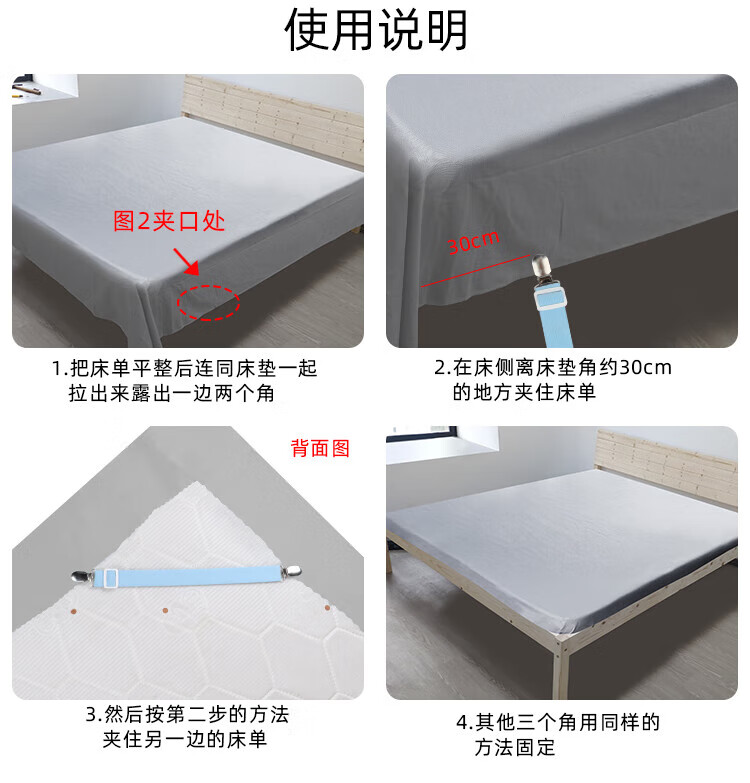 Jingxianju bed sheet holder anti-slip artifact bed sheet clip elastic band spring clip sofa anti-slip strip fixed buckle tensioner double-head bed sheet holder (black 4 pieces)