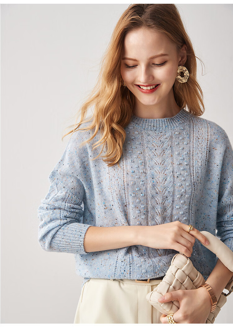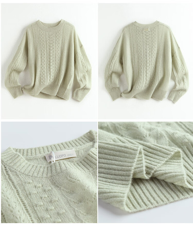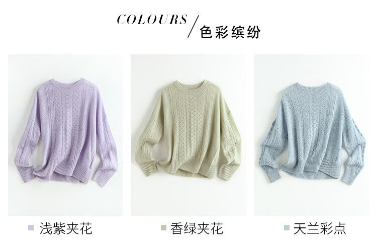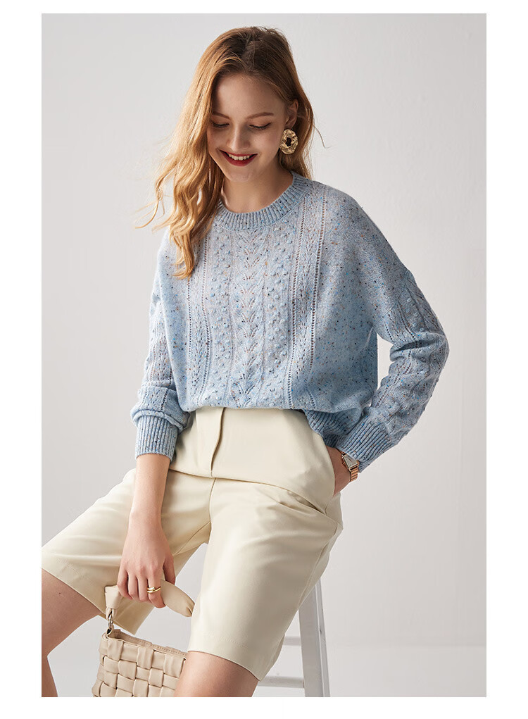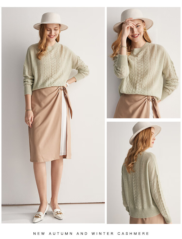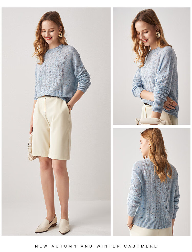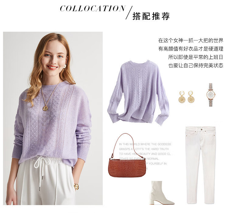 PALUOPO 100% Cashmere Autumn and Winter Hollow Cable Design Lady's Loose Temperament Knitted Cashmere Sweater for Women Light Purple Flower XL 110