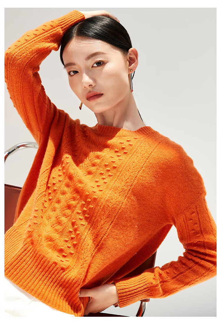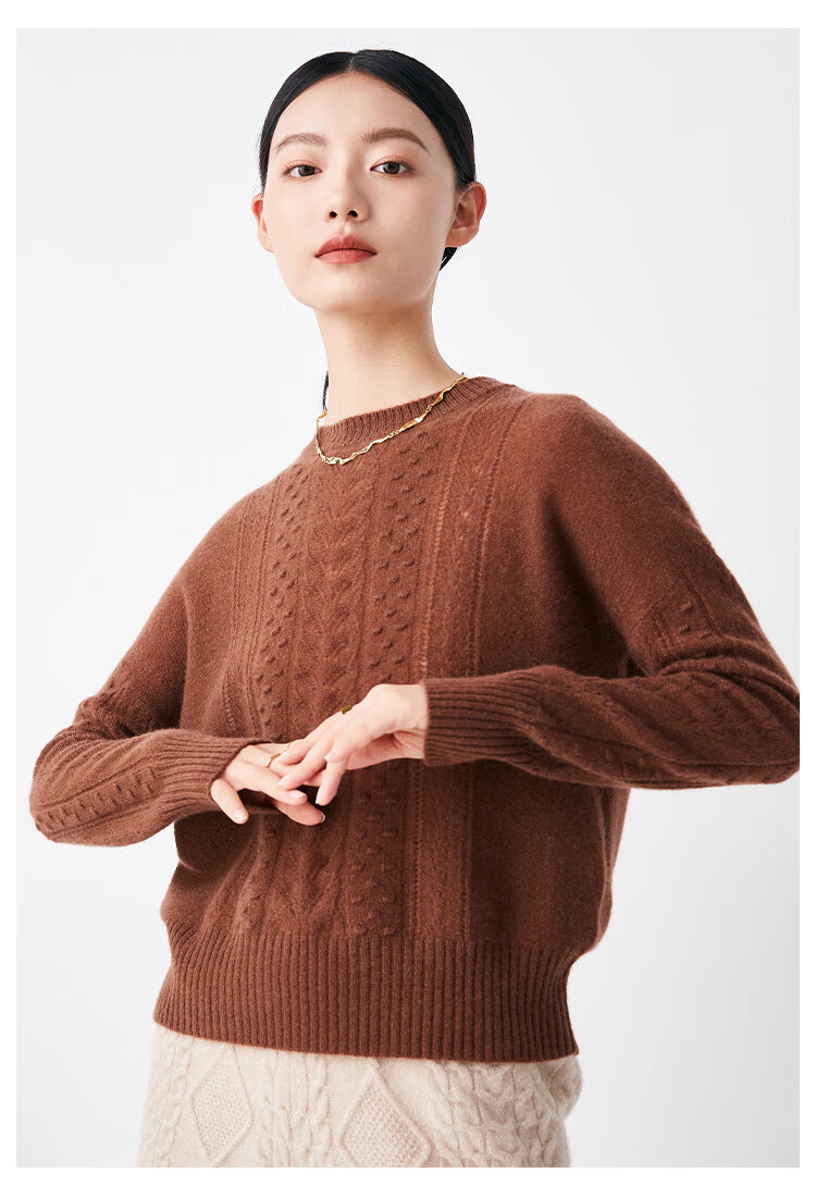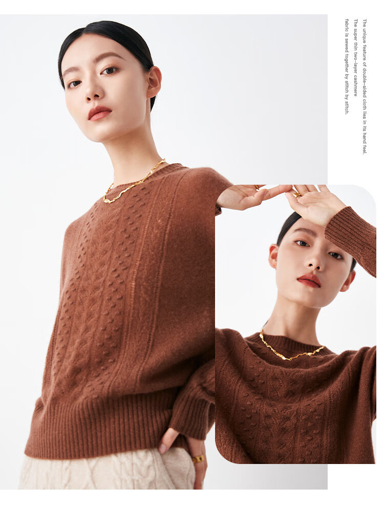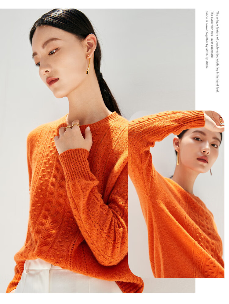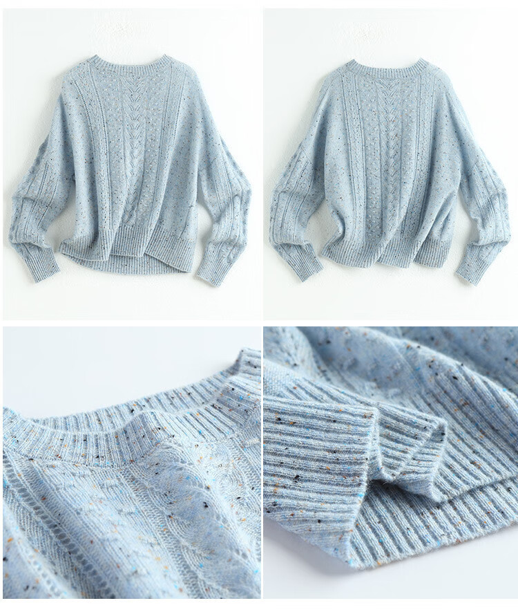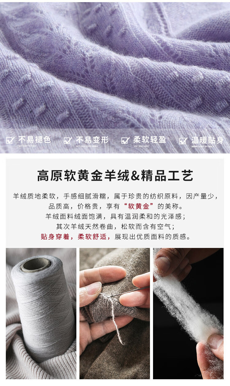 PALUOPO 100% Cashmere Autumn and Winter Hollow Cable Design Lady's Loose Temperament Knitted Cashmere Sweater for Women Light Purple Flower XL 110