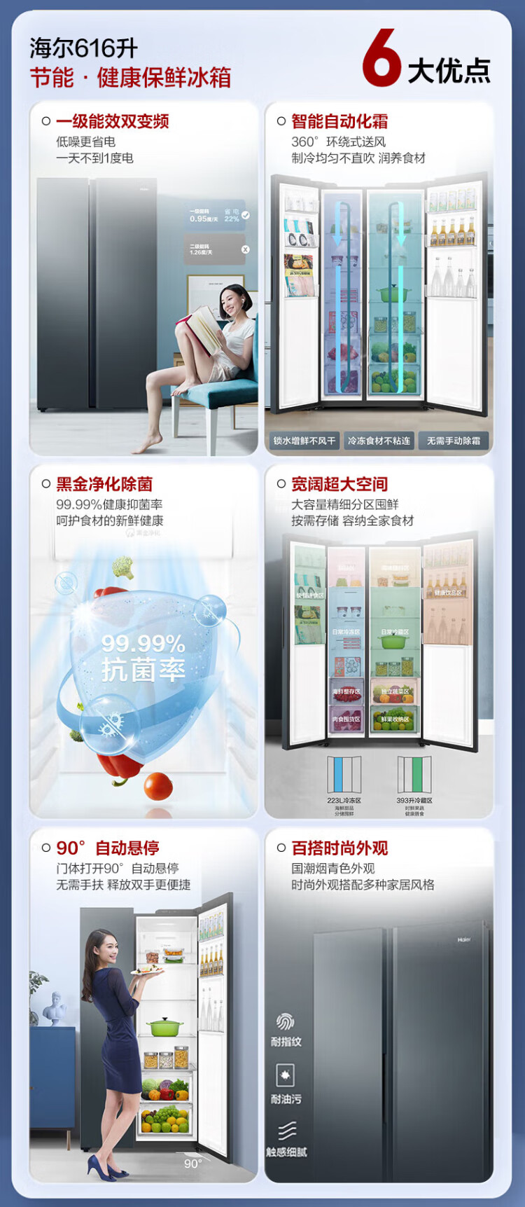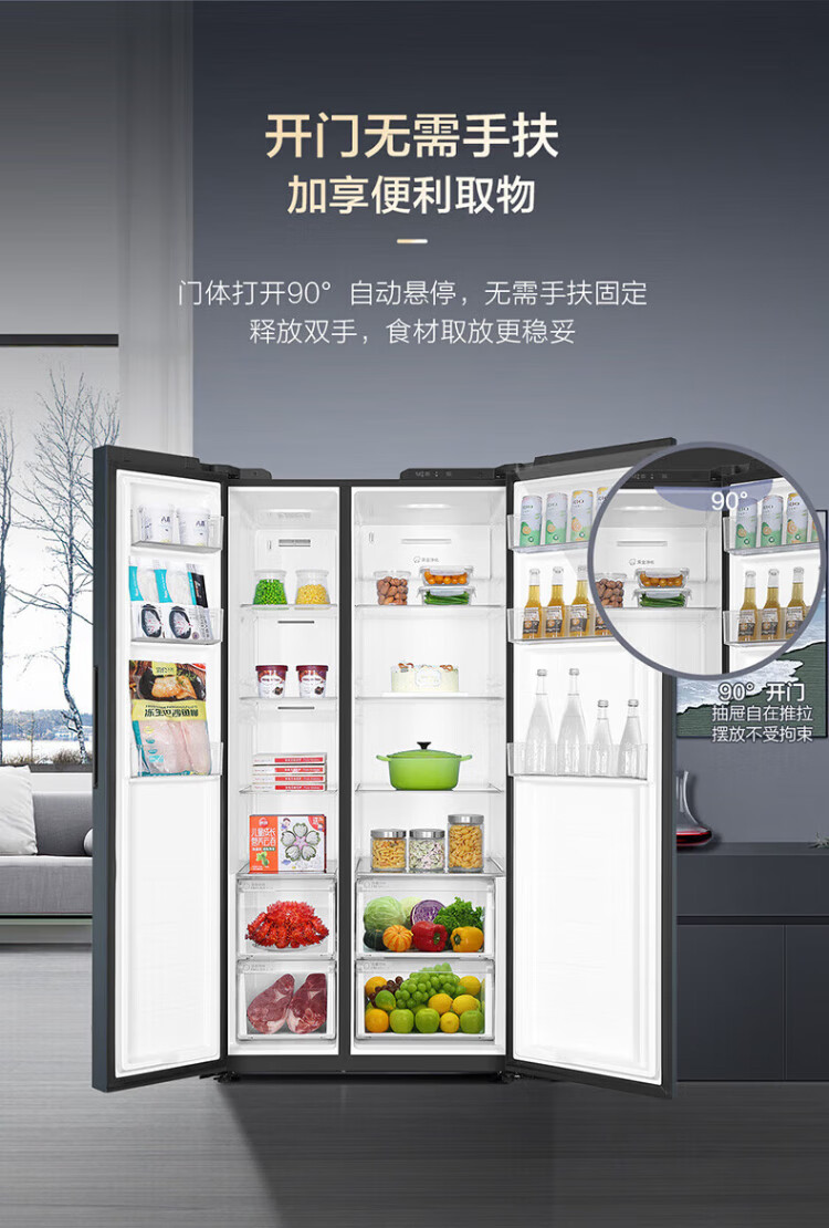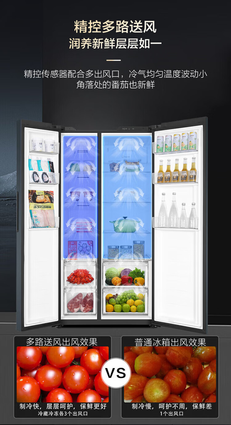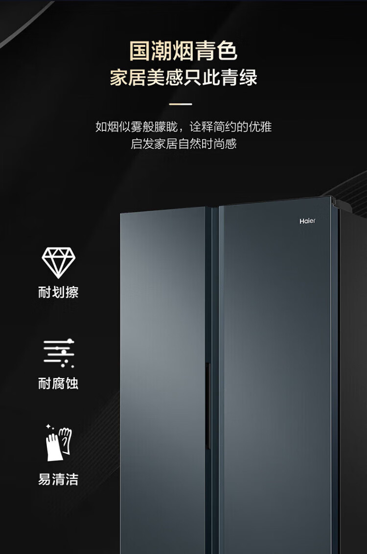 Haier Double Door Refrigerator 616 Upgraded Level 1 Energy Efficiency Frequency Converter Air-cooled Frost-free Large Capacity Home Side-by-side Two-Door Ultra-Thin Refrigerator Home Appliance Subsidy 20% Trade-In Black Gold Purification + Precision Control Multi-channel Air Supply 616WGHSSEDC9