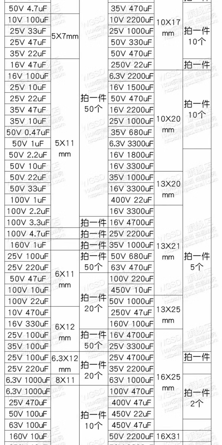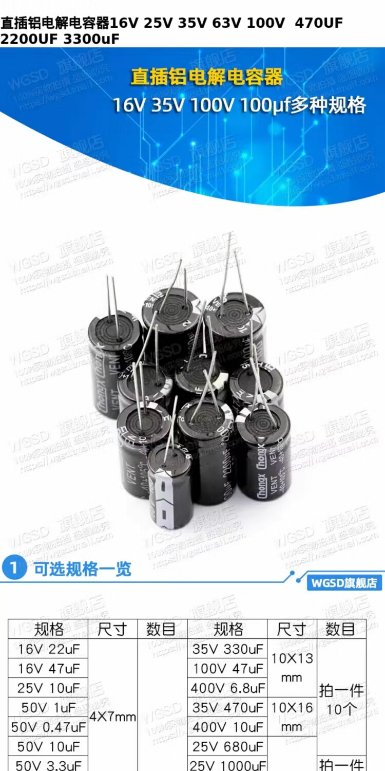 Dafuri direct plug aluminum electrolytic capacitor components high frequency collection 35/25/50v/10uF47/100/470/2200uF 50V 47uF volume 6*11mm (20 pieces)