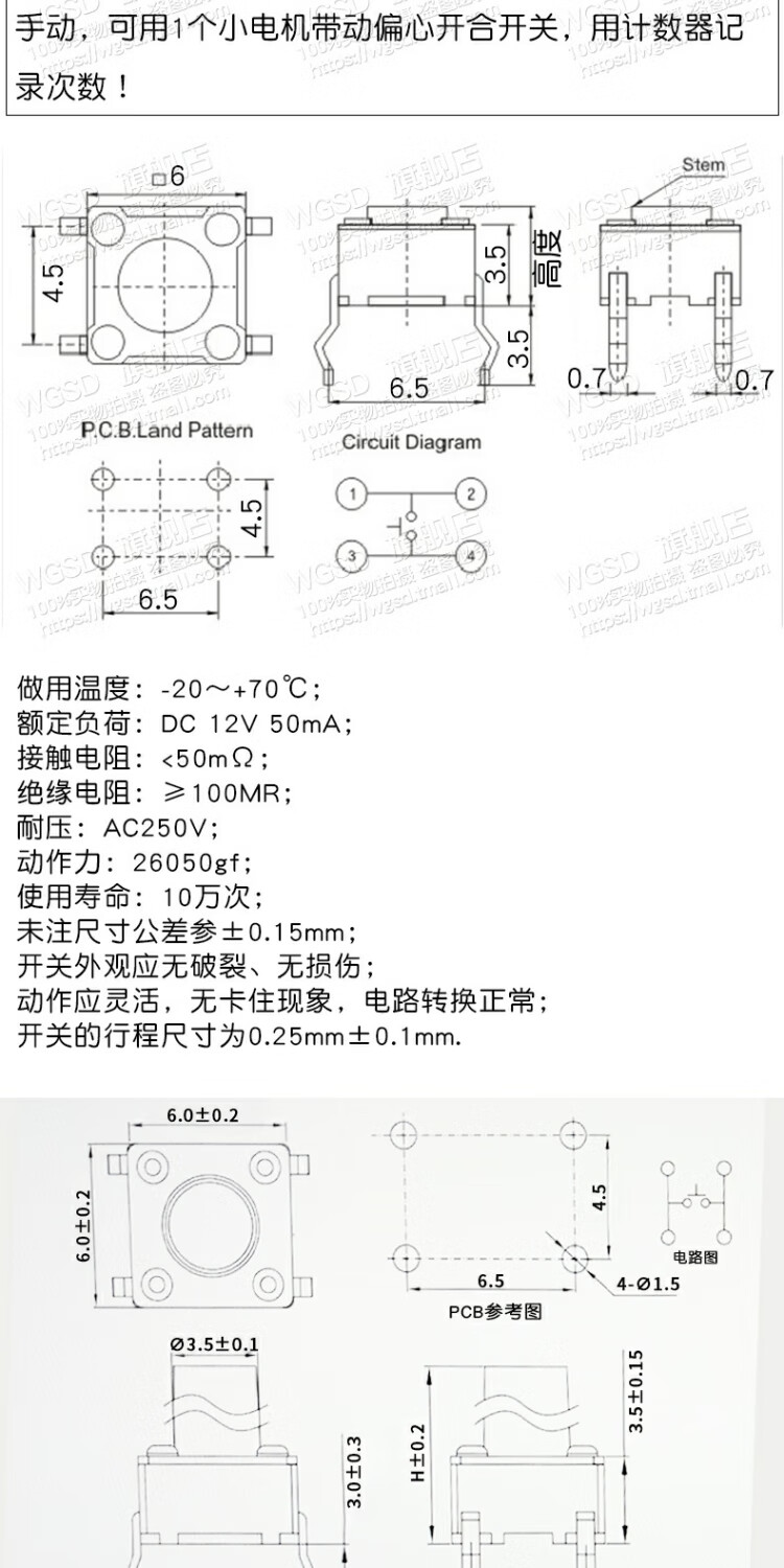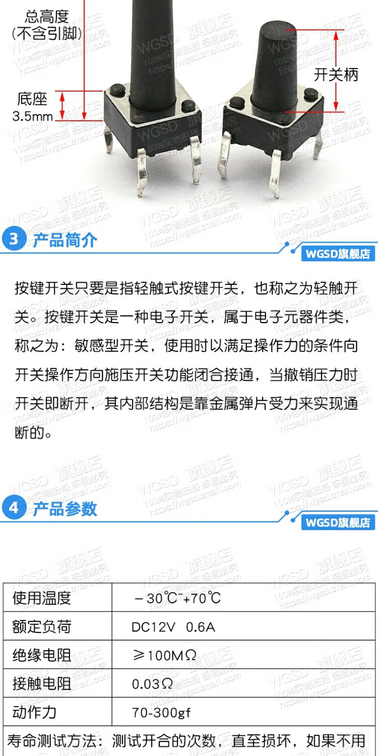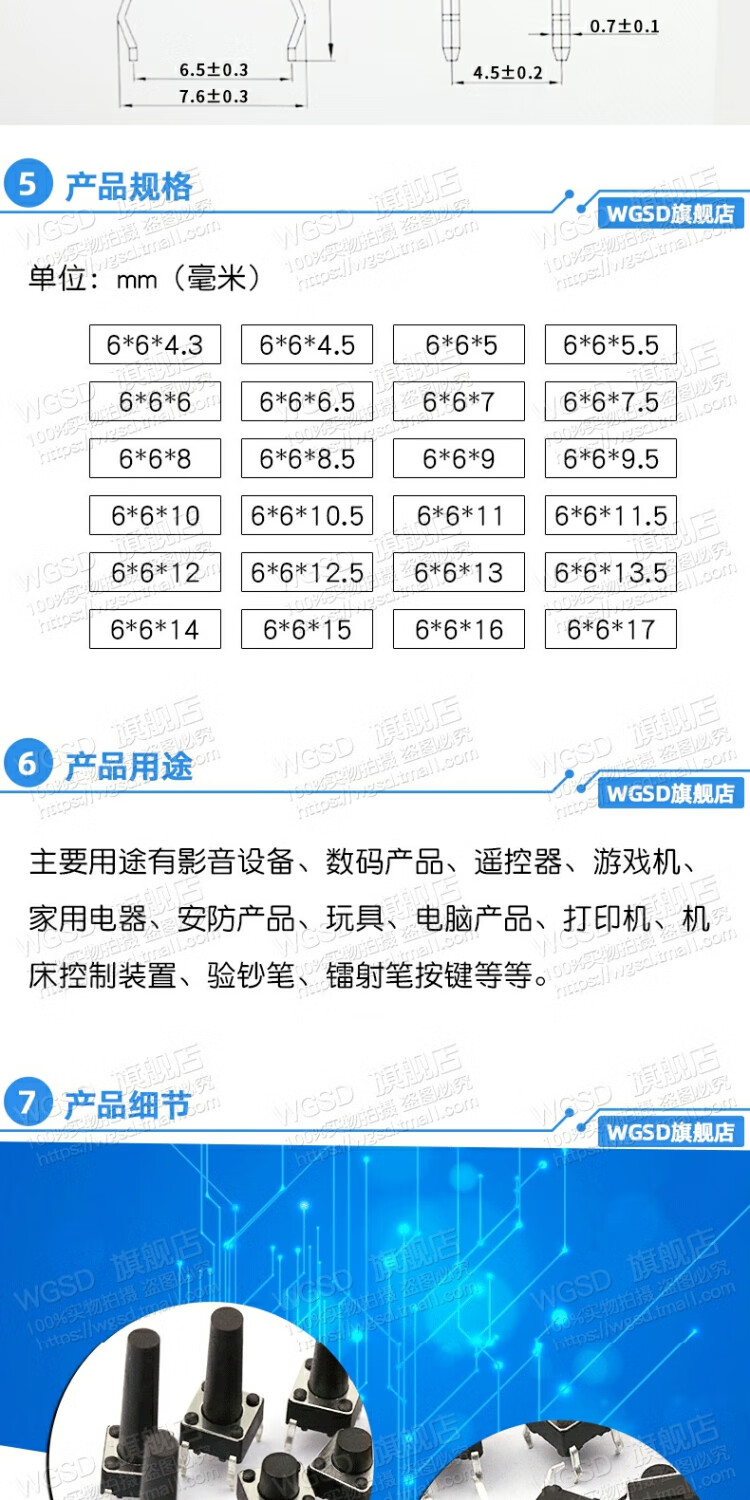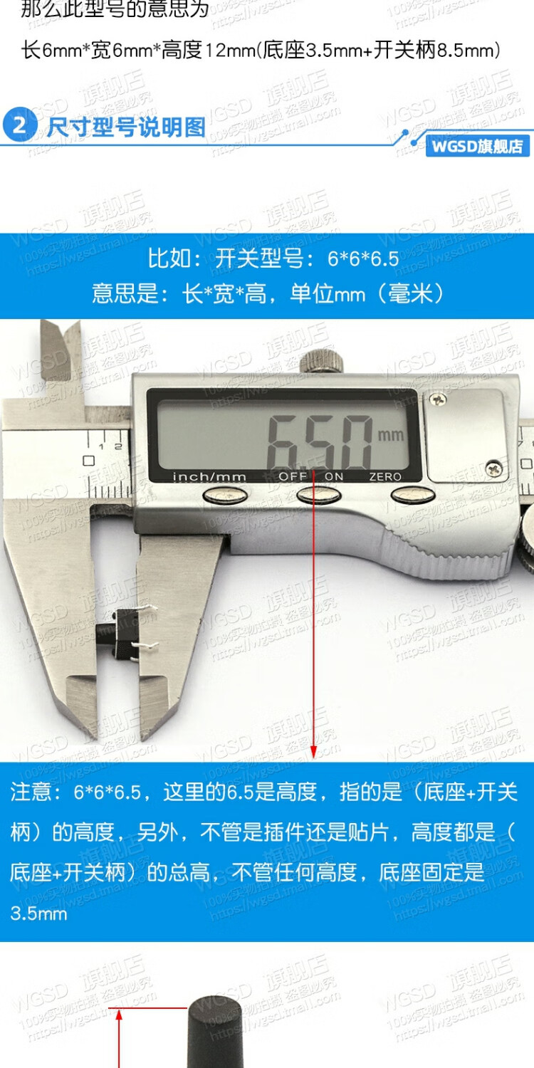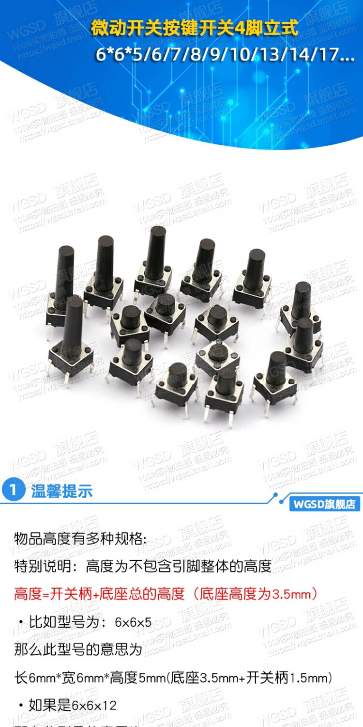 Dafurui micro switch key switch touch switch button 4-pin small induction cooker vertical four-pin 6*6*5/6/10/17 12*12*8.5 4-pin vertical switch (10 pcs)