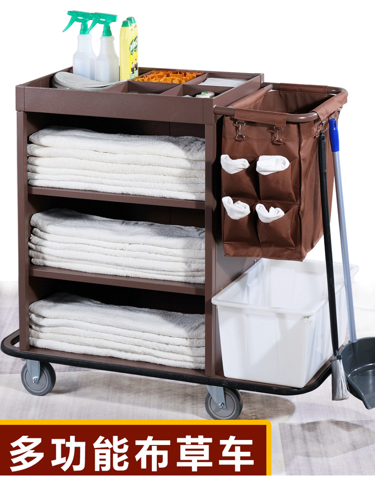 Multifunctional hand push linen cart cleaning work cart cleaning cart guest room entrance hygiene service cart hotel short guest room special price (iron paint)