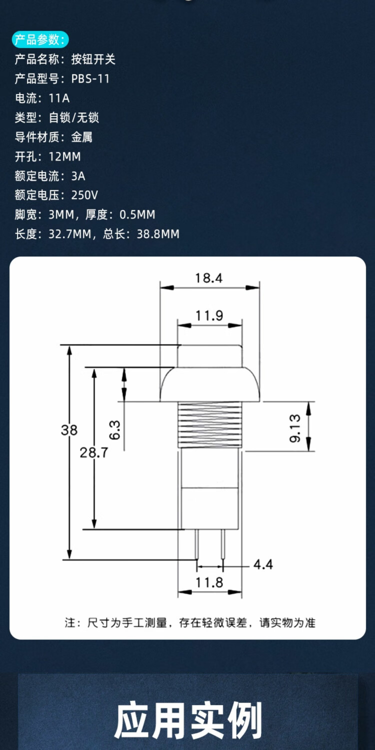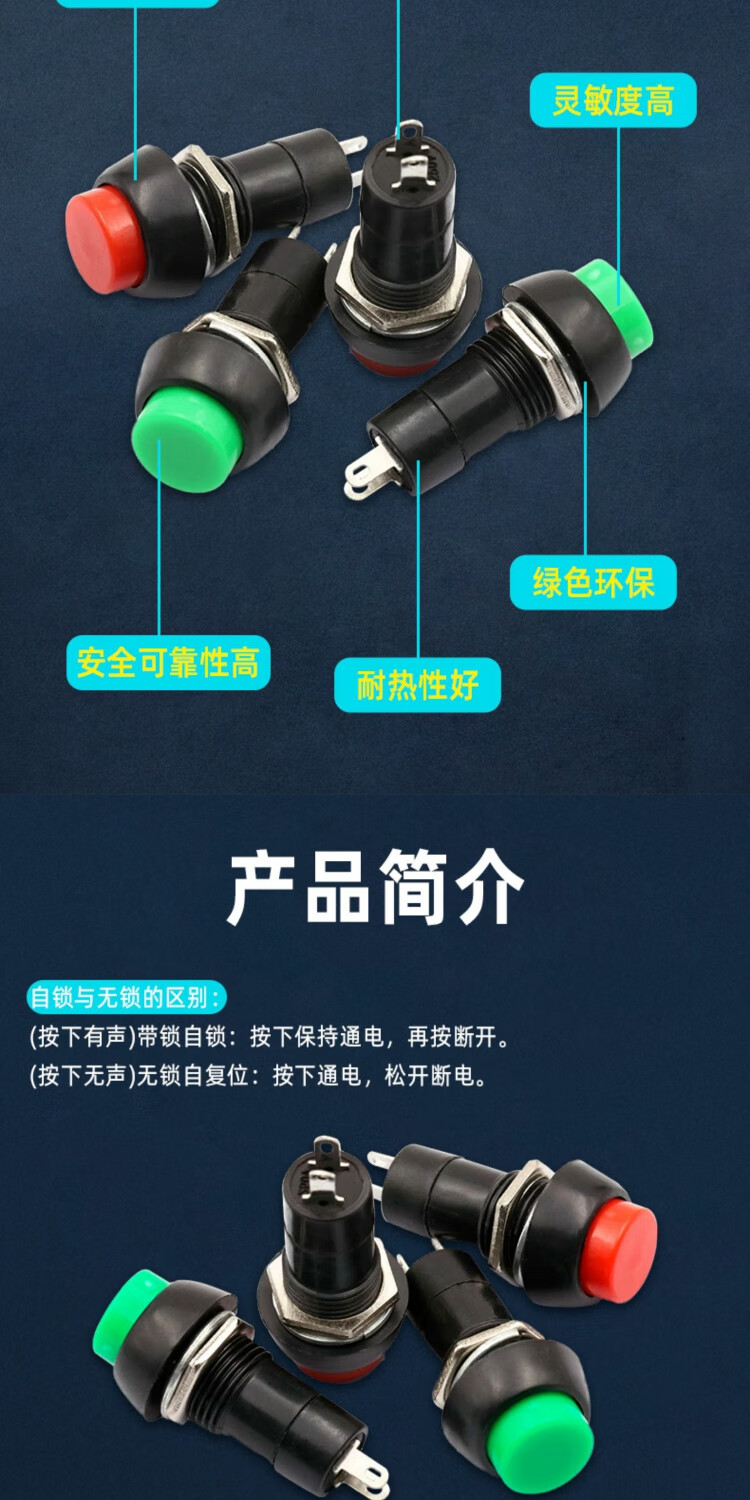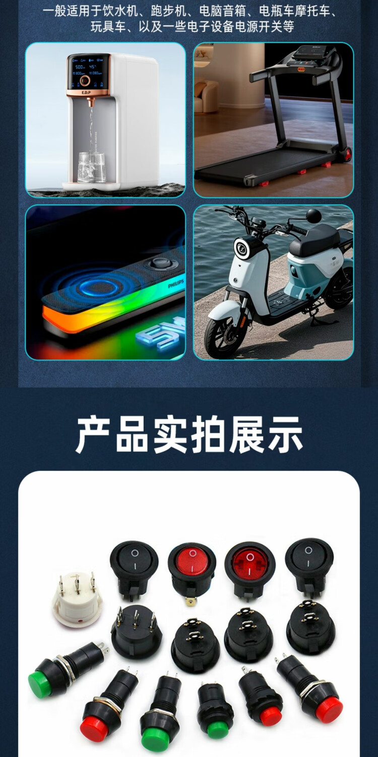 Dafului button switch round button switch round small hole power push type micro-boat type boat-shaped fin PBS-11 self-locking opening 12mm red (5 pieces)