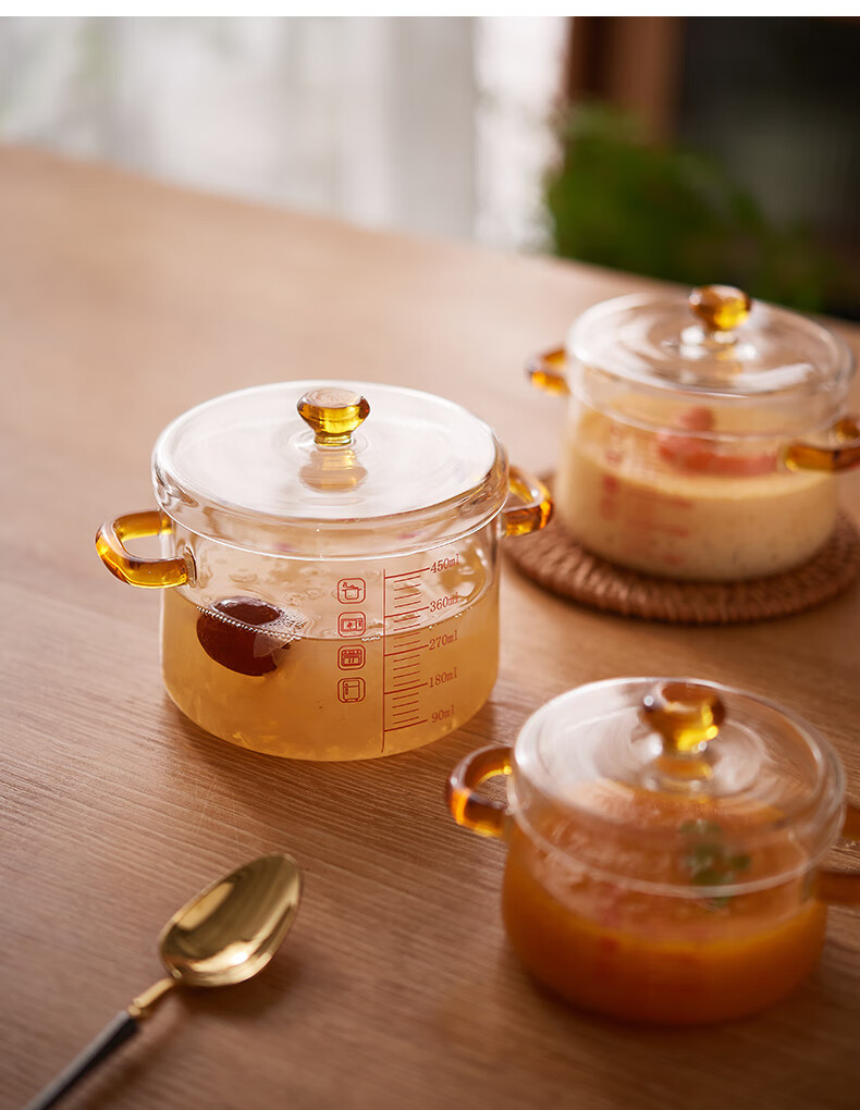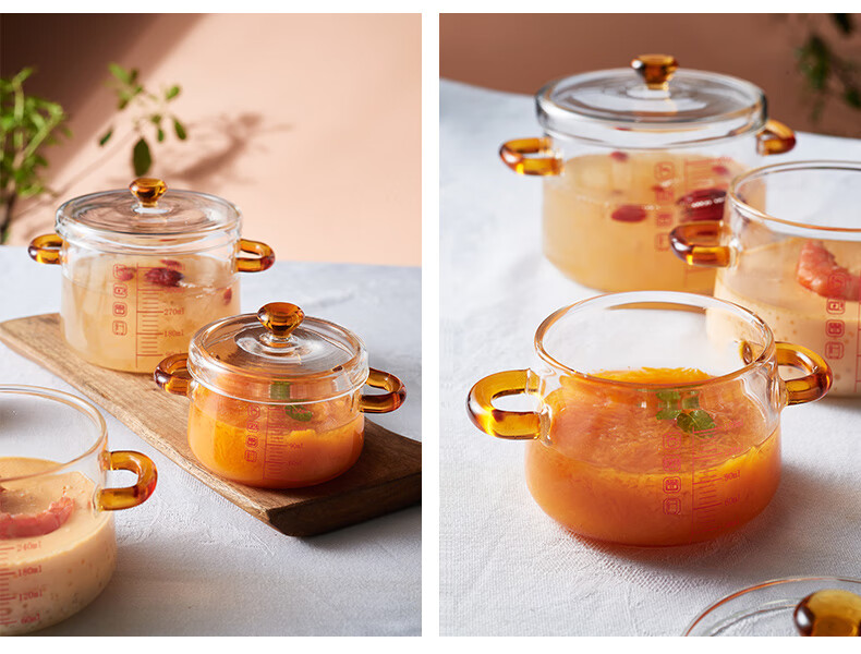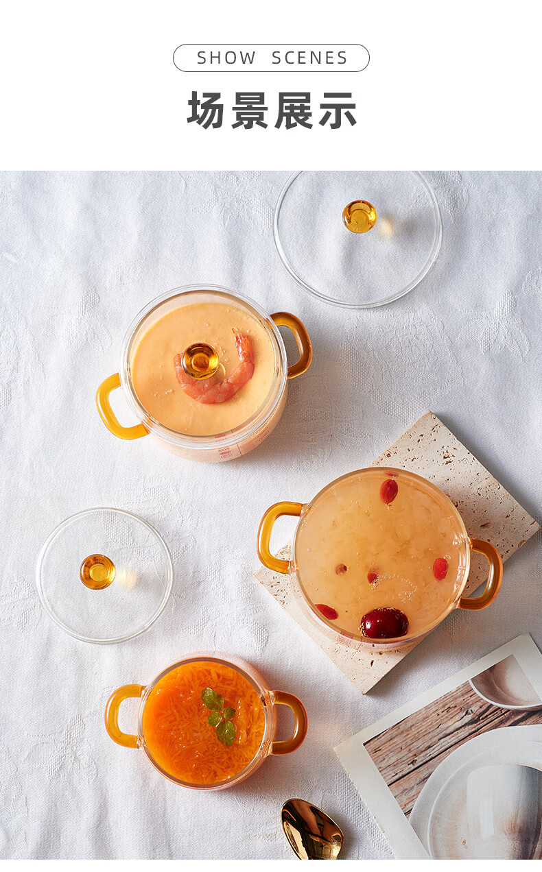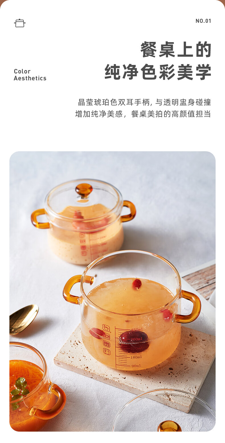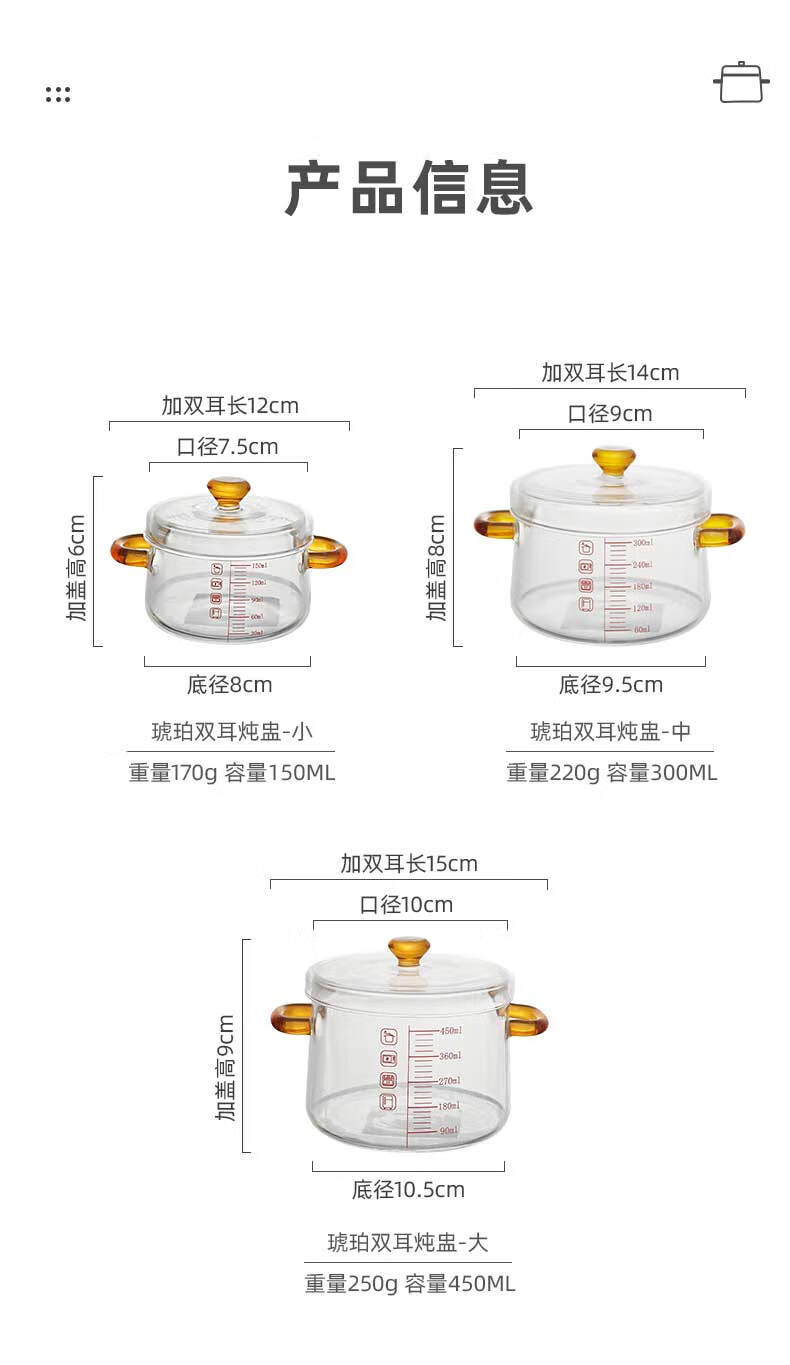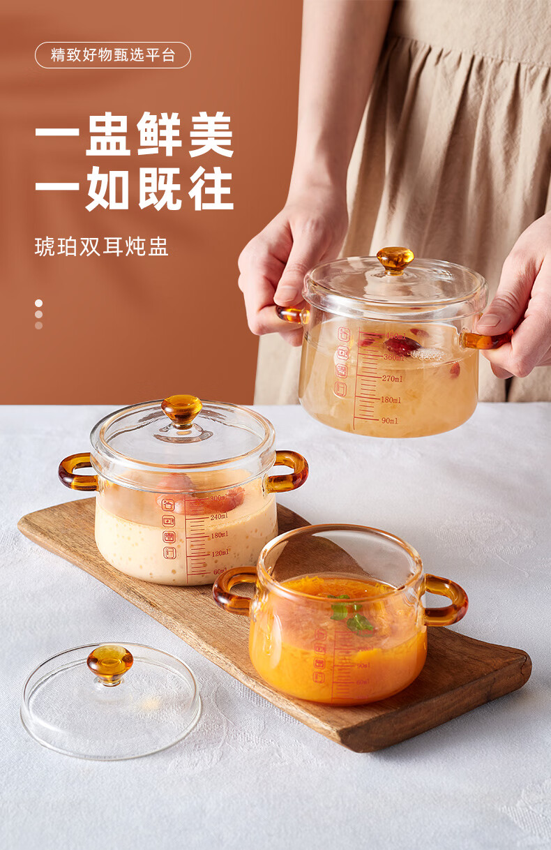 Chino steamed egg bowl, special baby high temperature resistant stew pot, small steamed egg household bowl with lid, baby steamed egg custard stew pot, amber binaural stew pot - medium size