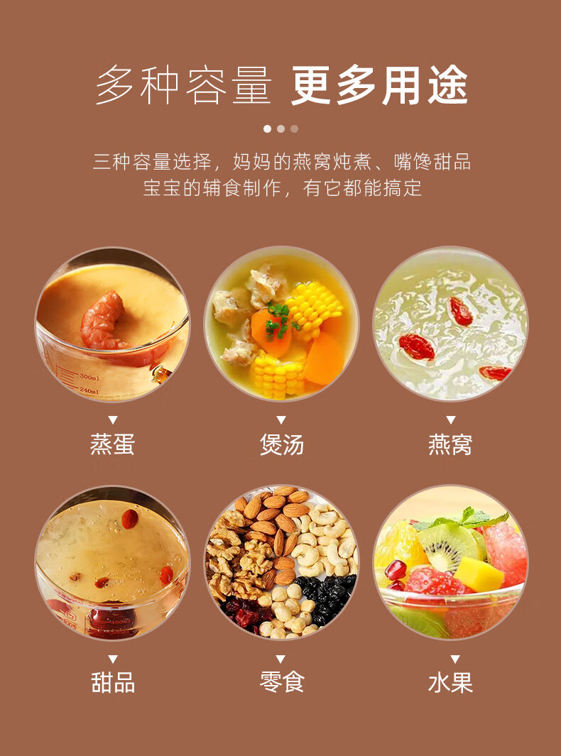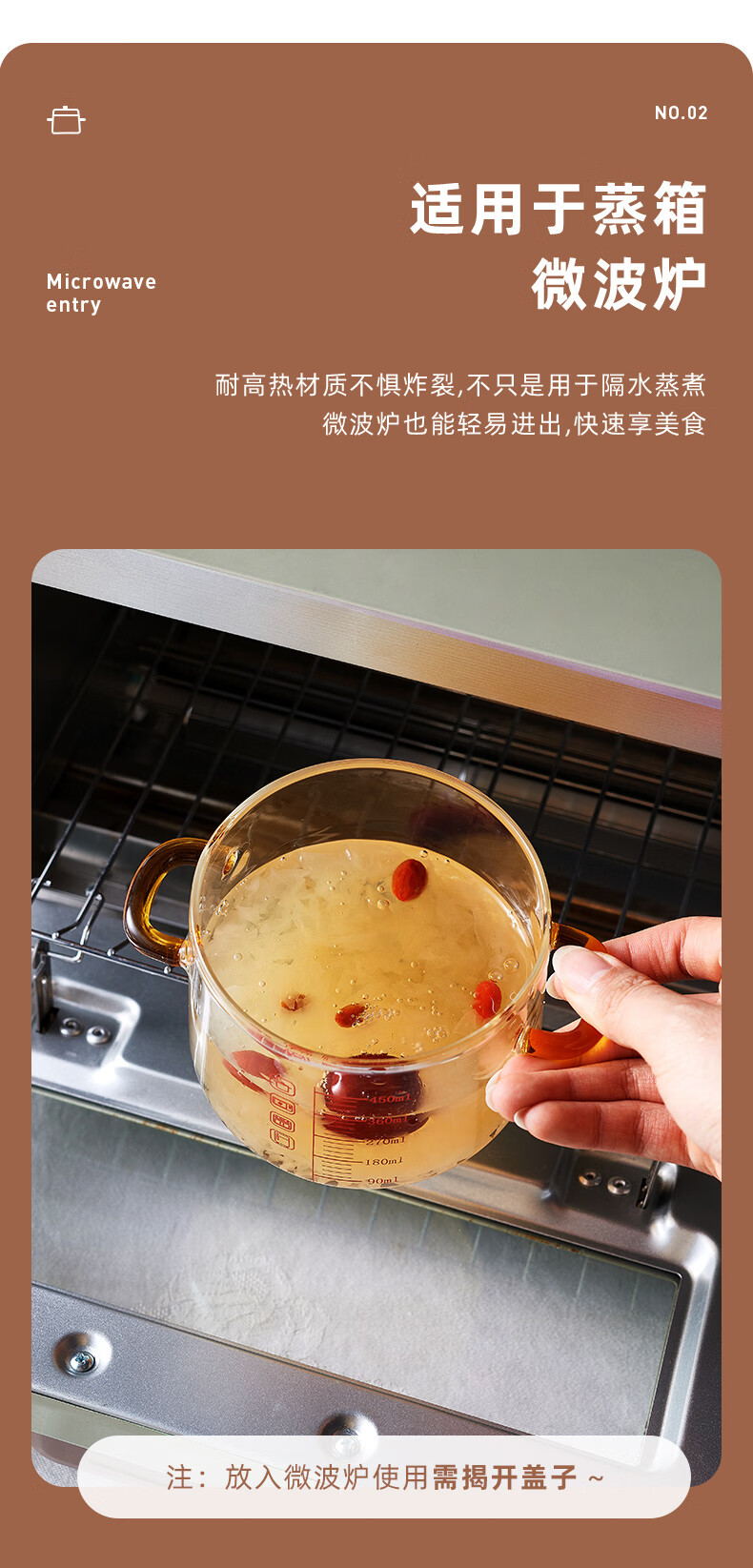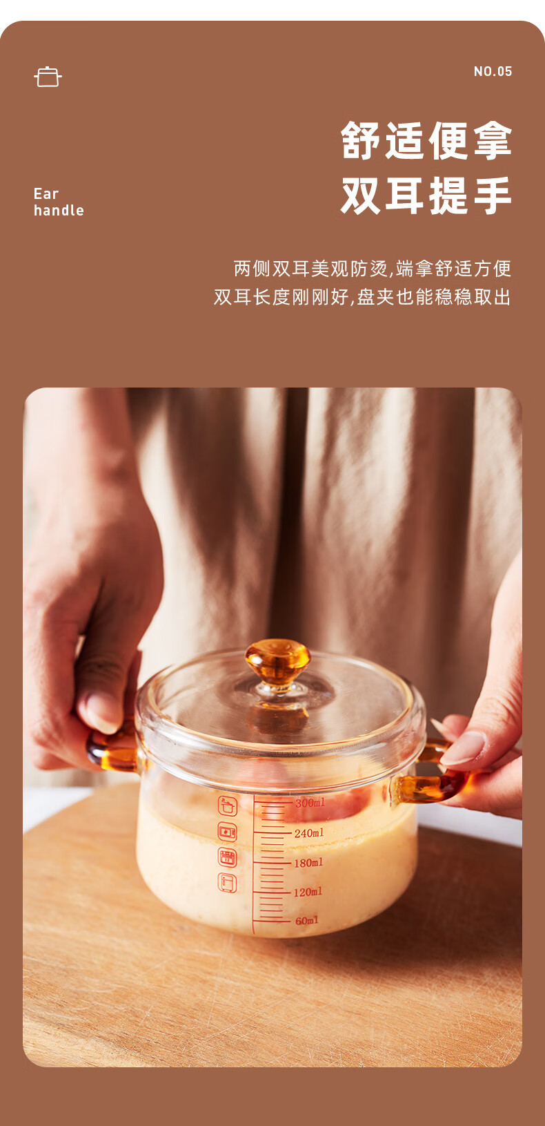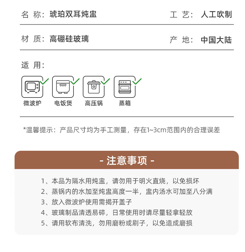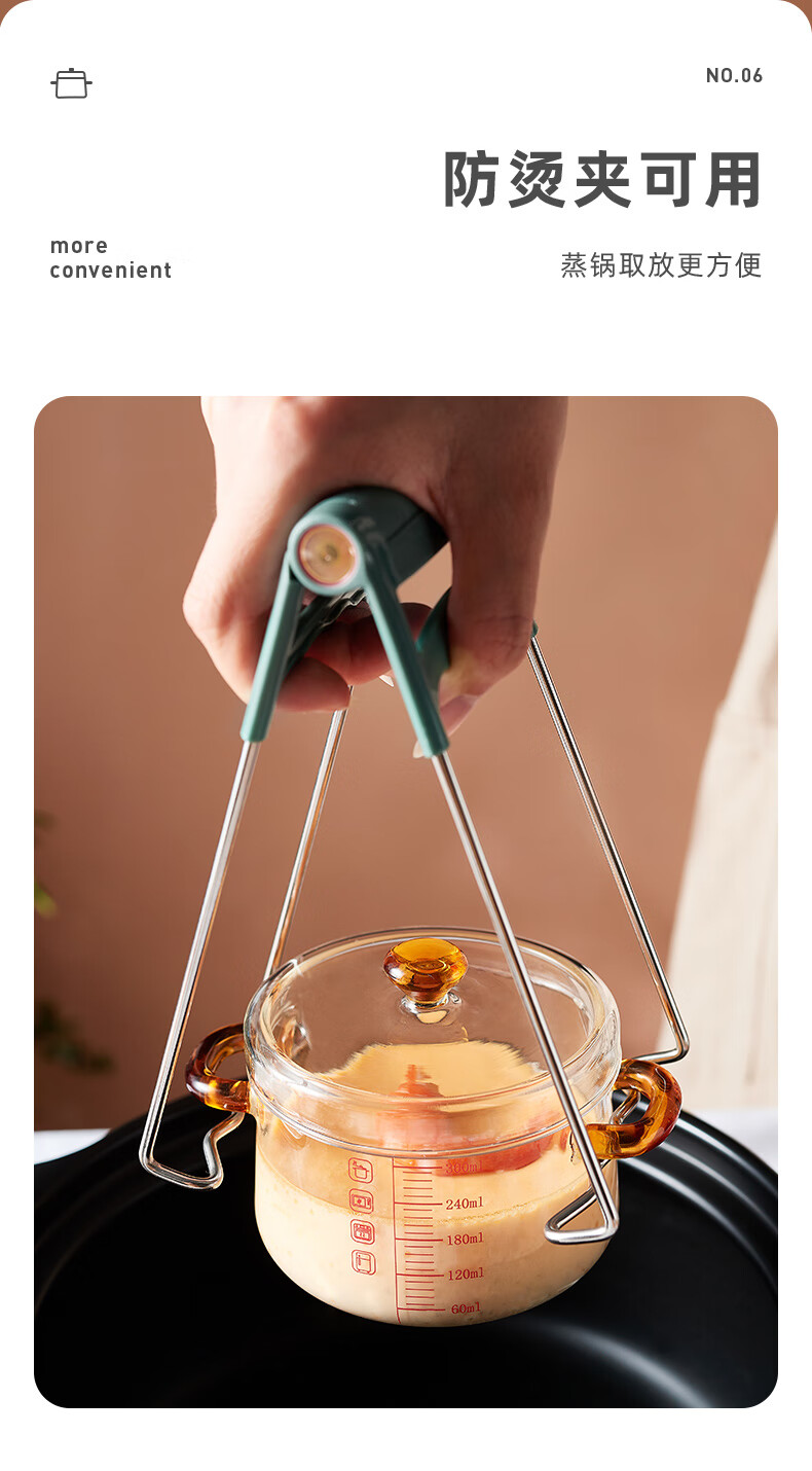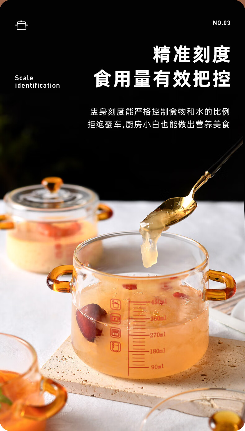 Chino steamed egg bowl, special baby high temperature resistant stew pot, small steamed egg household bowl with lid, baby steamed egg custard stew pot, amber binaural stew pot - medium size