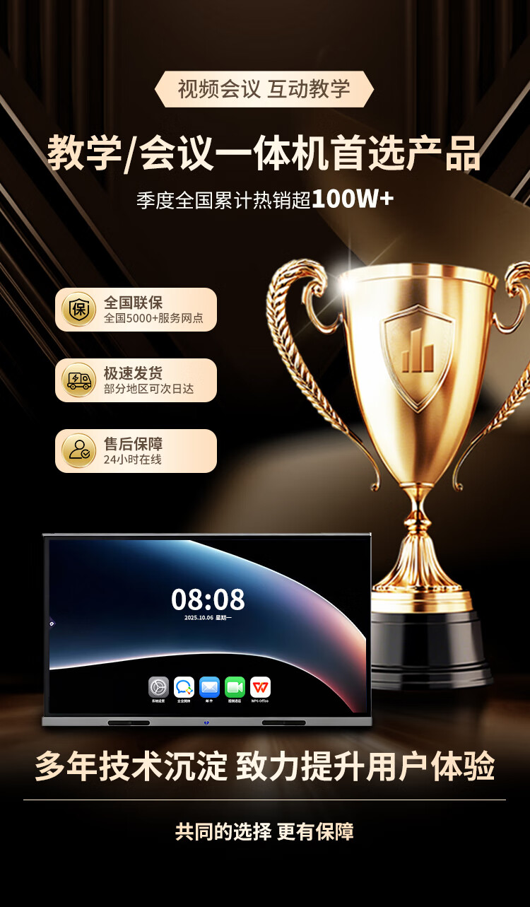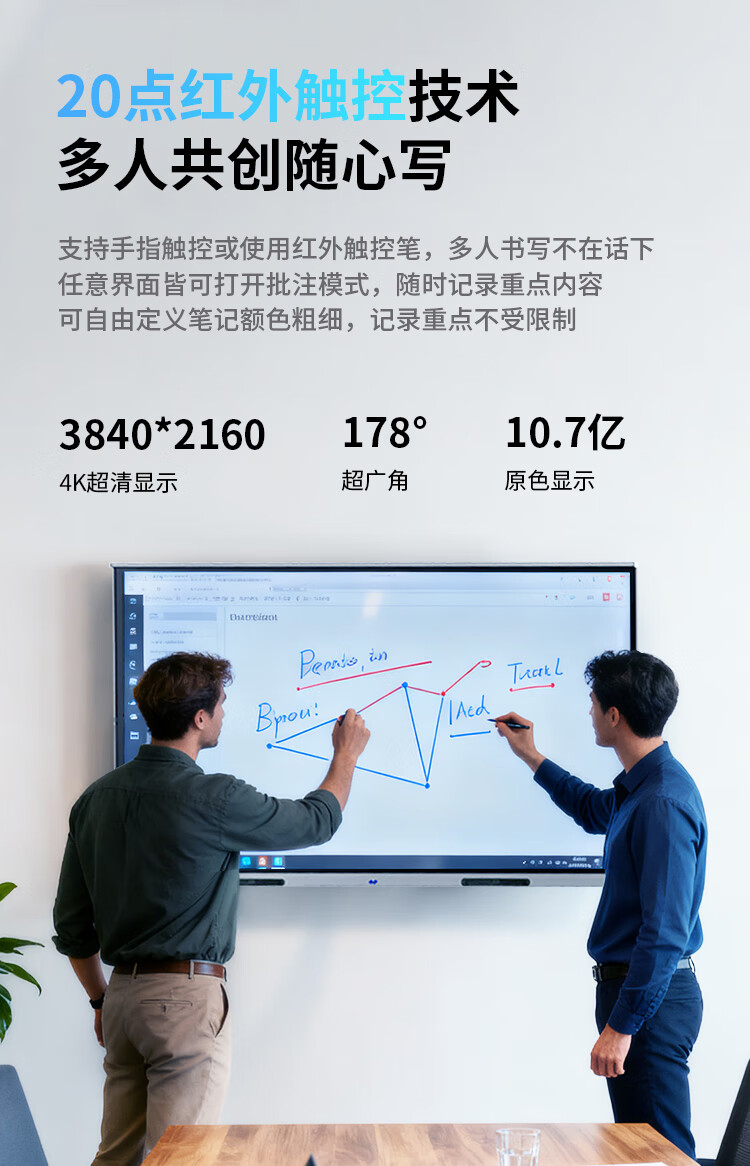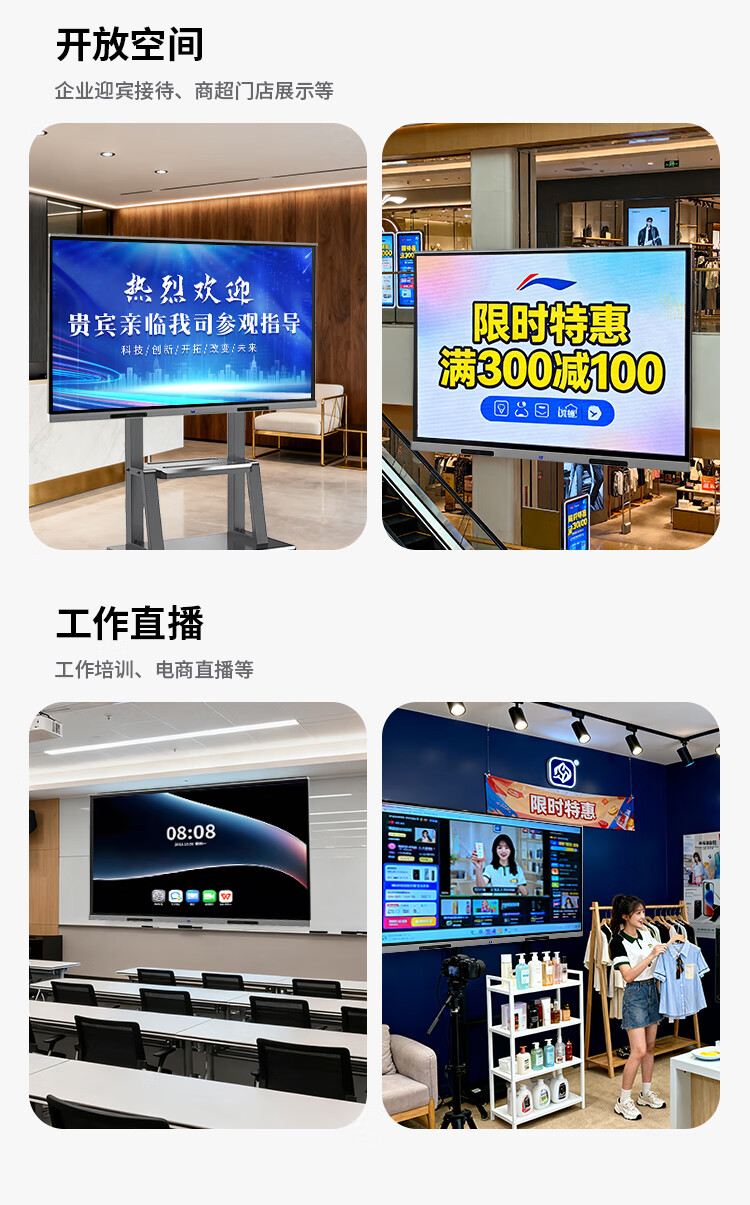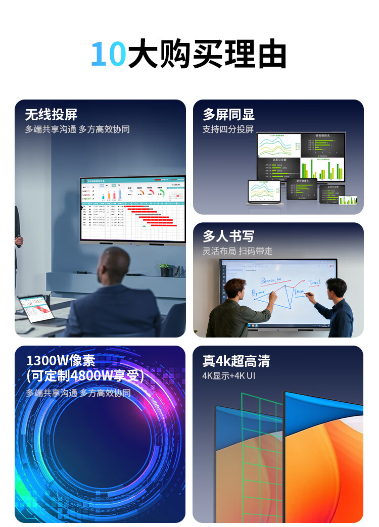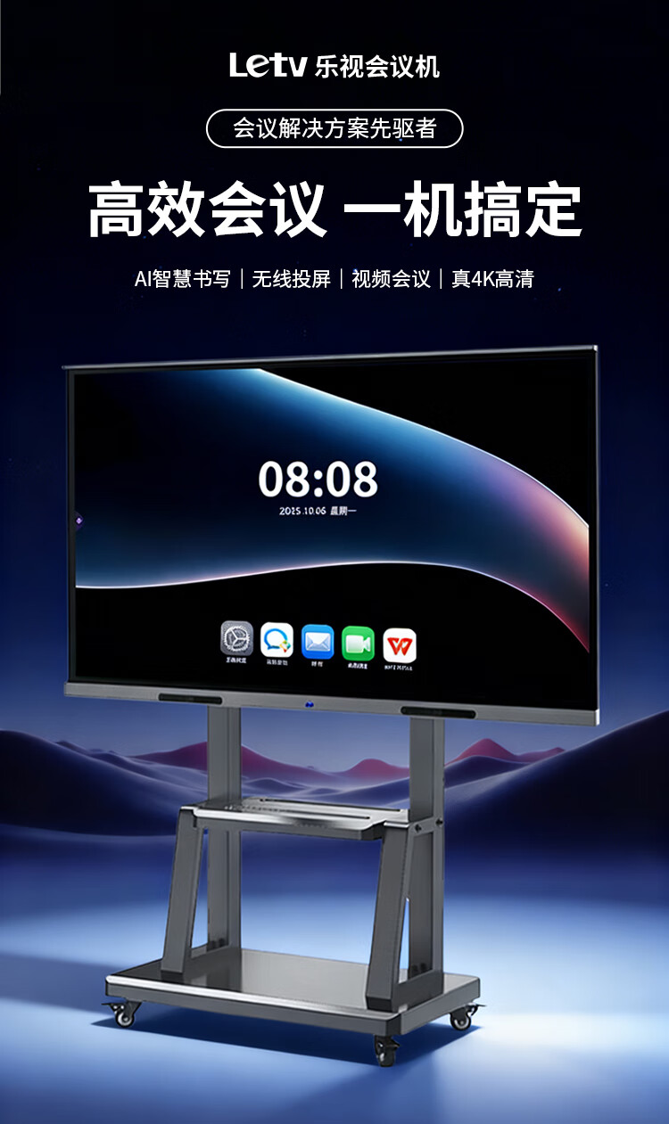 LeTV TV conference teaching tablet all-in-one machine 55/65/75/85/100/110 ultra-clear 4K electronic whiteboard mobile touch screen office wireless projection training TV smart screen 110 inches home installation touch all-in-one machine + mobile cart dual system i5 Android 6+64/win8+256