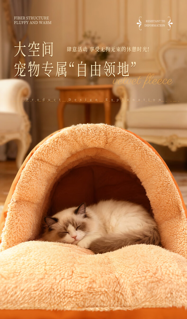 KimPets Cat Nest Winter Warm Semi-Enclosed Cat Sleeping Nest Thickened Kitten Winter Sleeping Bag Four Seasons Universal Dog House Cat Bed Lava Orange M Recommended for pets under 12 pounds