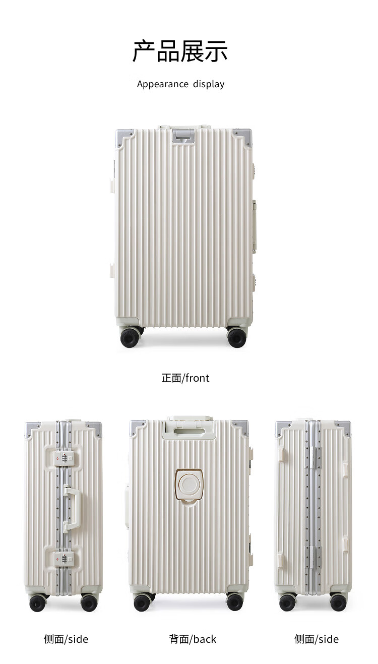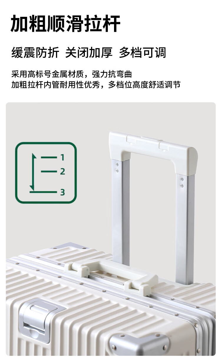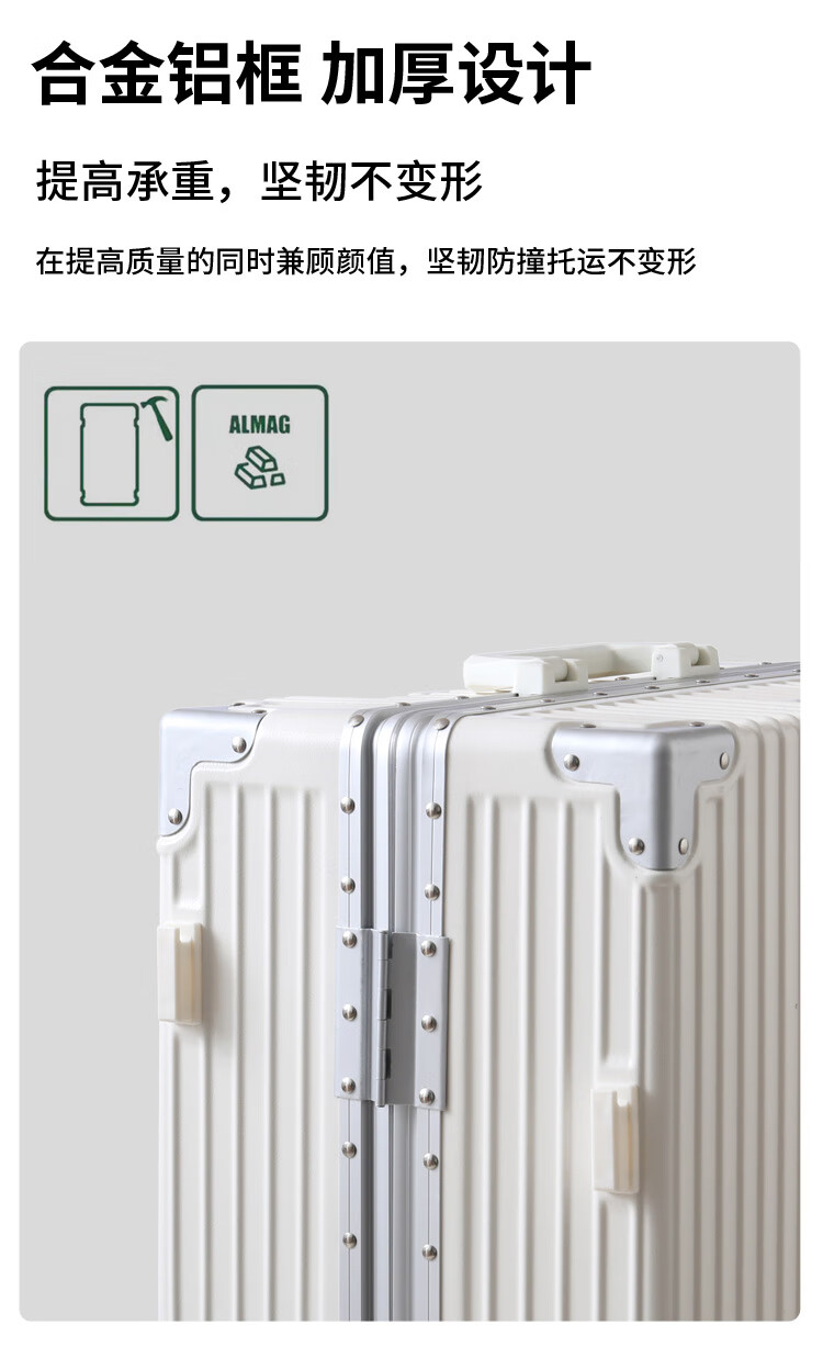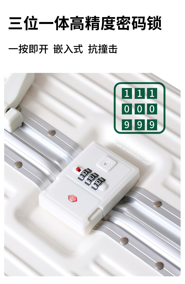 Diston Paul (DISIDUNBAOLUO) new upgraded aluminum frame suitcase, strong and durable, thickened hard shell trolley case for men and women, large capacity password box, milky white, infused aircraft wheel + wet and dry lining + front hook, 20 inches, wear-resistant and thickened box - comprehensive upgrade